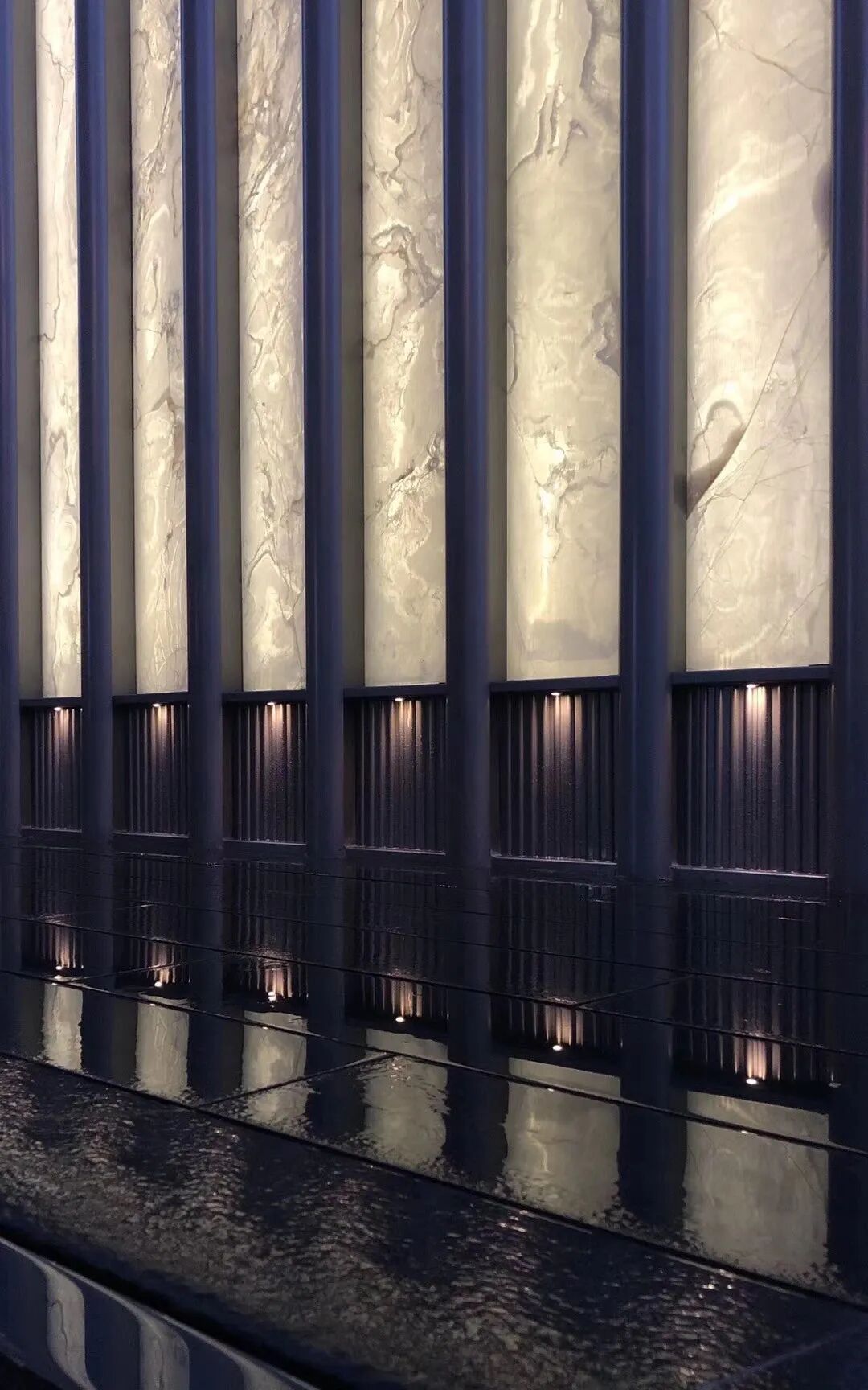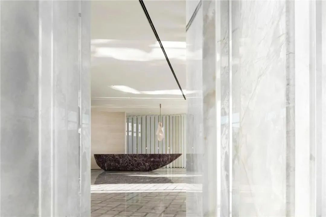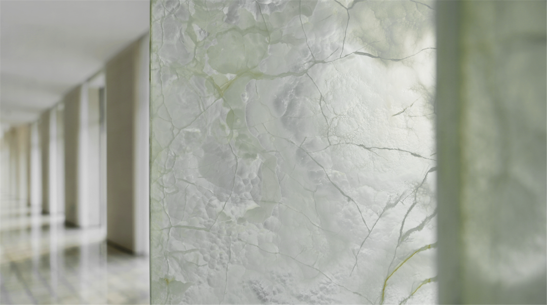 隈研吾选取了玉石作为主材,用高精度的设备将玉石切成薄片,保留其天然的美丽纹理,又增加了其从未有过的通透性。