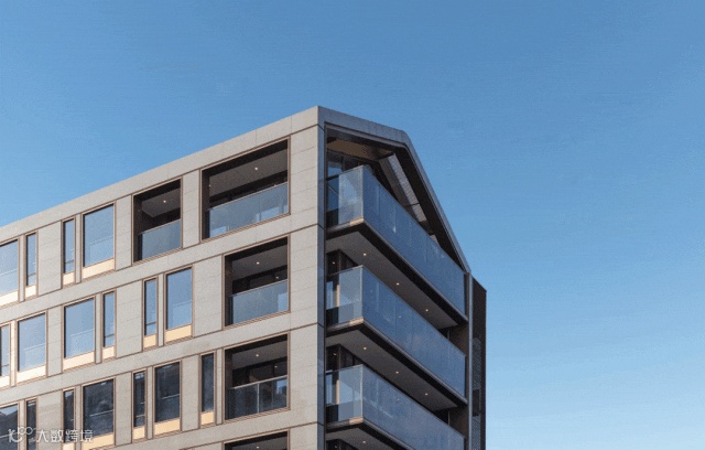 住宅立面通过恰当的玻璃与石墙比例、精准的构造处理和材料搭接,使建筑在体态的稳重与轻盈之间达成平衡,视觉上保持统一的美感,打造符合当下时代公建风格的韵律和气质。