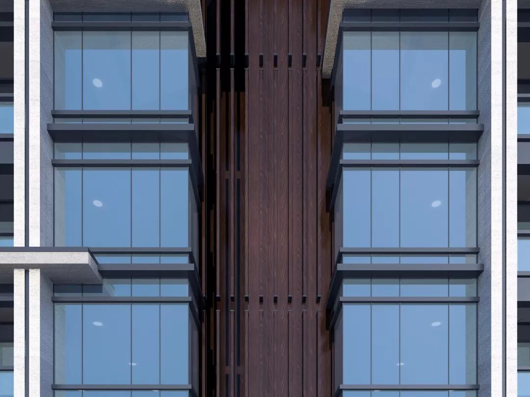 华景川·云檐里外立面用材主打石材干挂(干挂石材价格昂贵,高档大气)、木纹铝板以及三玻两腔low-e中空玻璃,一眼看去就会觉得非常高级。