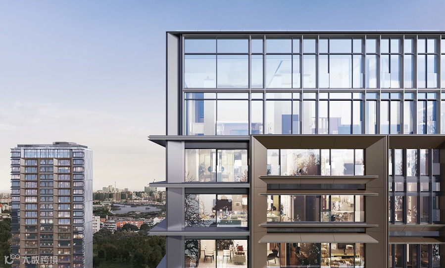 中海京叁號院在建筑语言上,沿袭了甲叁号院“金属铝板+玻璃幕墙”更具有艺术感的风范。相比较传统石材,更显得轻盈通透。