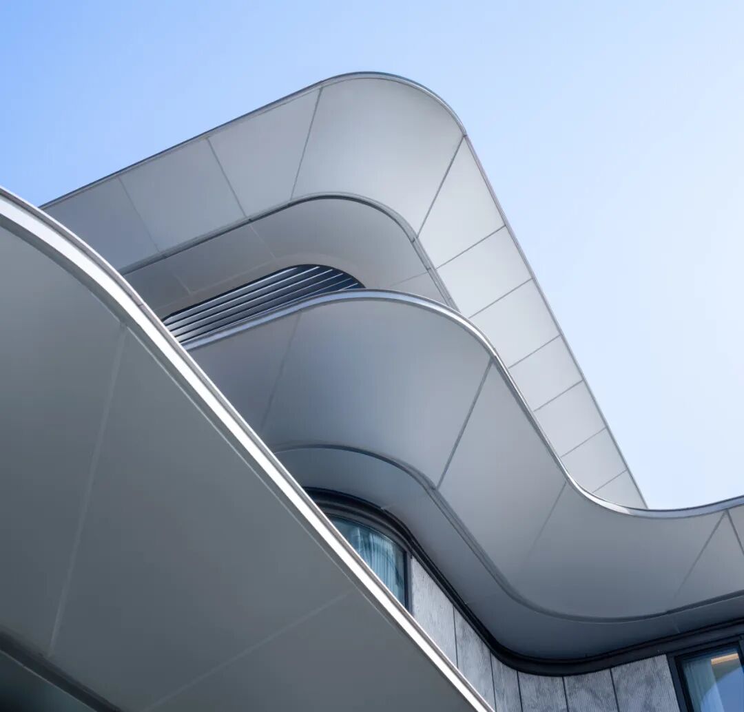 双曲铝单板具备铝单板本身的独特优异性能,其次,双曲铝单板造型多变,可根据不同曲率进行设计加工,能很好地满足设计师的建筑创意设想,让建筑物拥有良好的外观装饰展示效果。