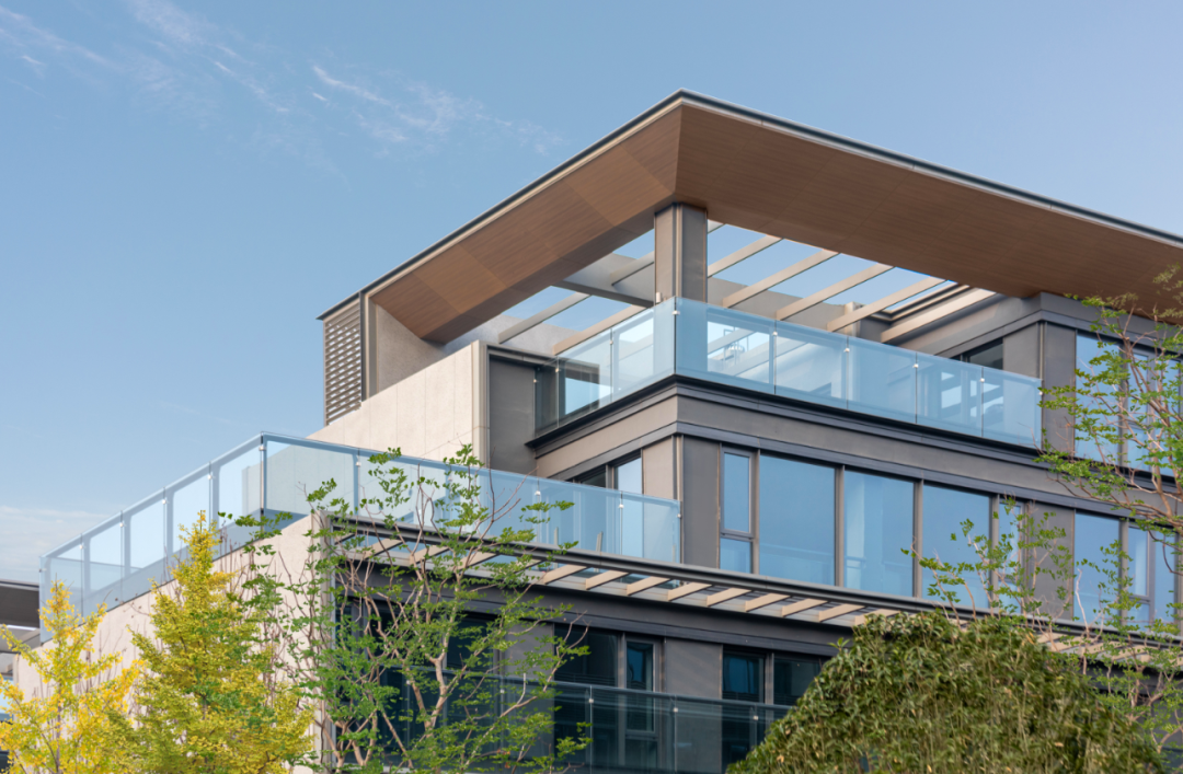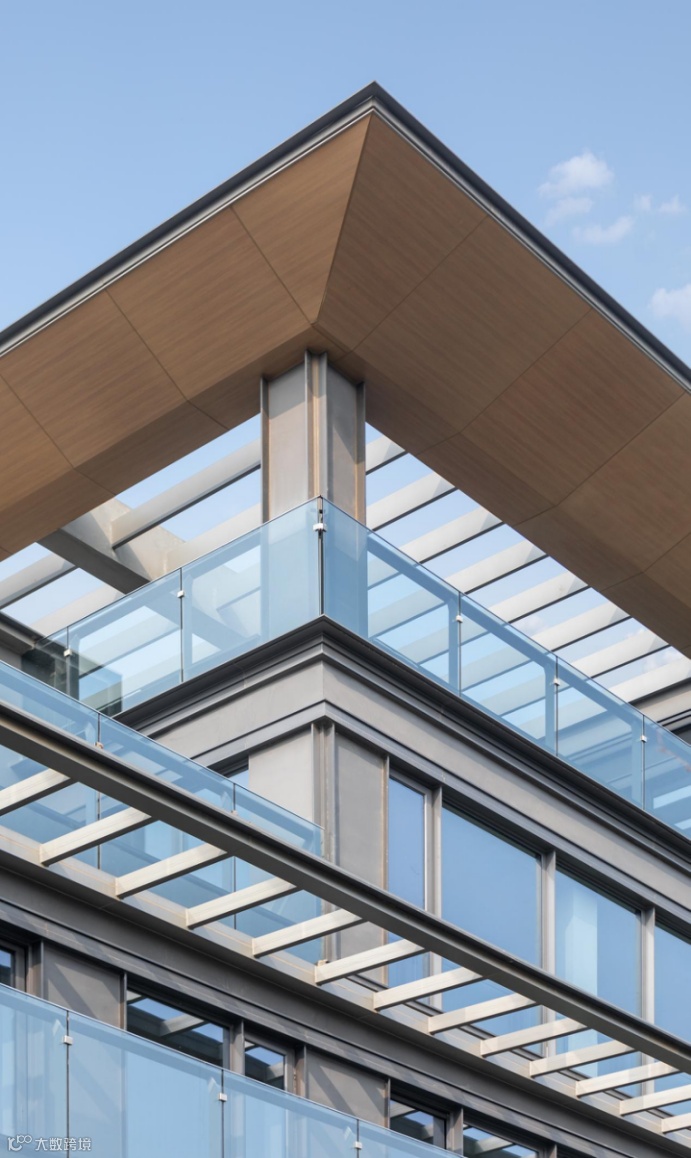 天阅云合源屋顶覆盖了造价不菲的与立面材质光滑融合的仿石材铝板。