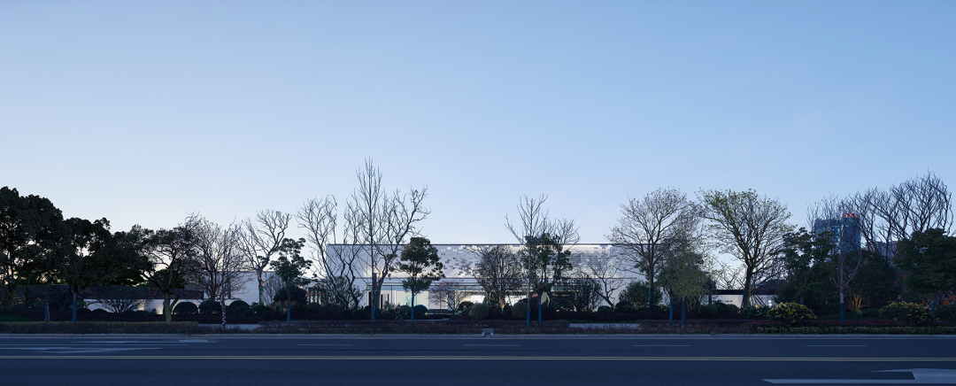 海和澜庭生活艺术馆,沿城市界面,以绸缎而落向湖而展,通过片墙的手法形成错落的建筑体块,将城市界面景观渗透进入室内空间。建筑线条强烈且富有张力,用纯粹的设计语言替代传统意义的建筑立面,面向城市界面展现出其丰富的内部空间。