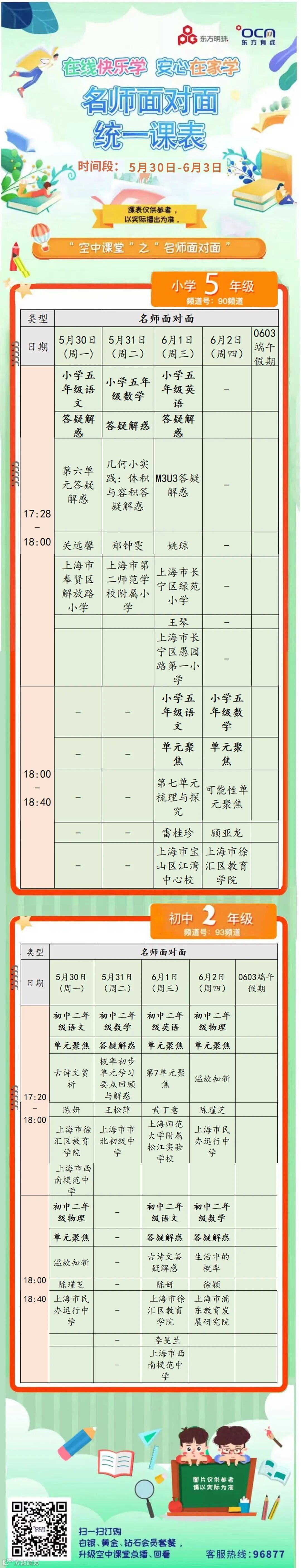 东方有线本周“空中课堂”的“名师面对面”和“学科精要、名师点评”课表,快来收藏!