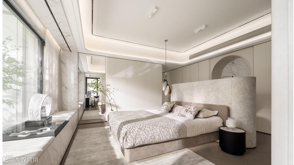 双套房设计,都为南向,其中主卧建面约30+㎡,约5.6m的大开间,让主卧生活更有延展性,起居室可以放下一张大床、一套沙发和茶几,总统套房的既视感,让卧室“小家化”发挥淋漓尽致。