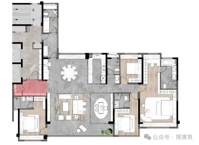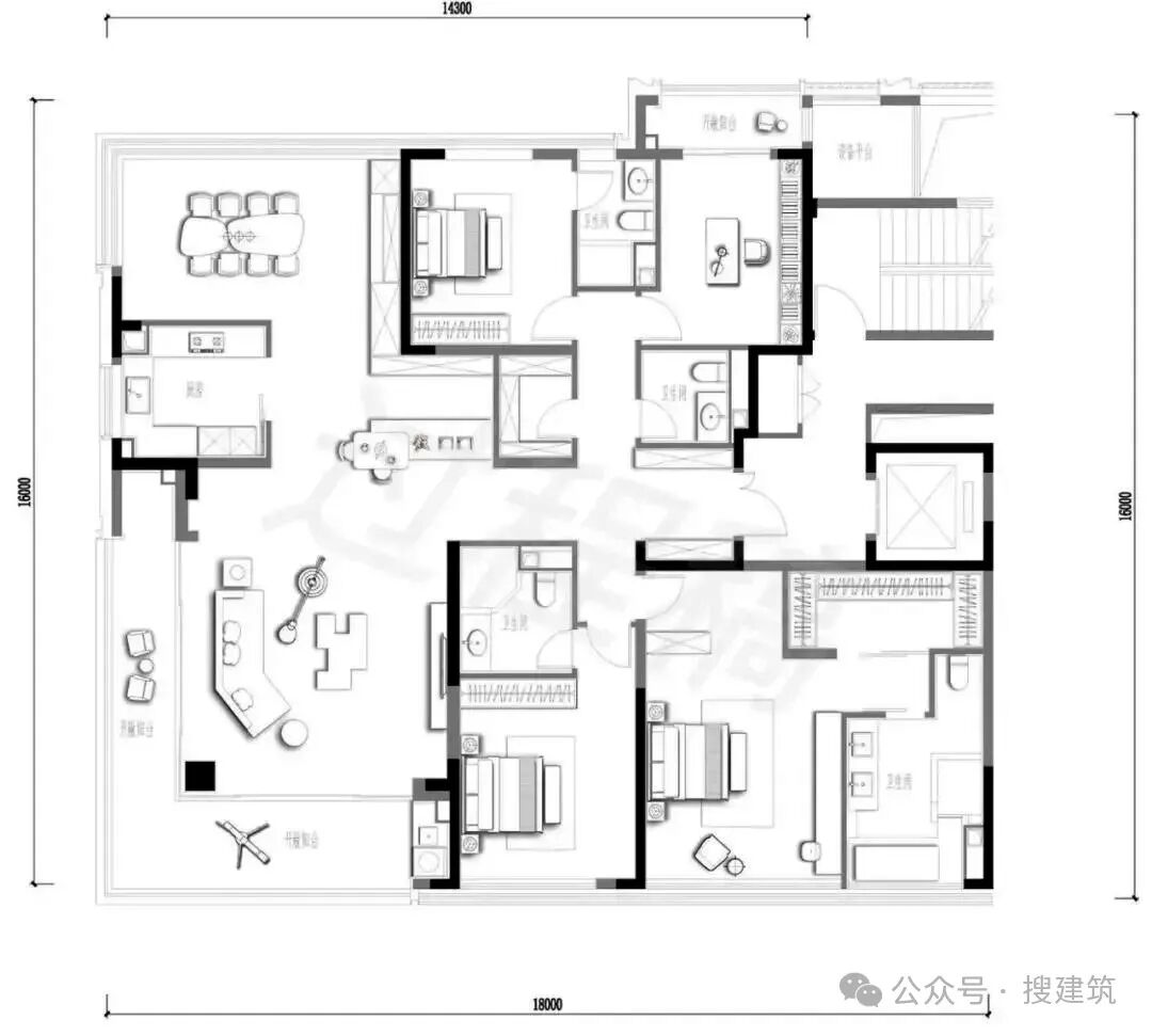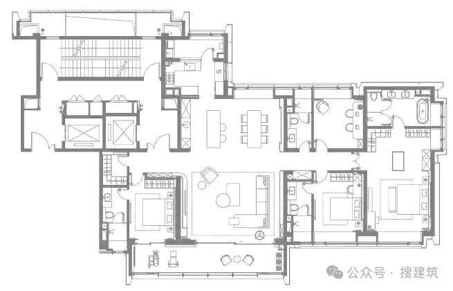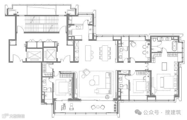 本期搜建筑给大家总结了一批建筑面积约200㎡以上的大平层户型,有着较高的纯粹性,希望能给大家一些启发。