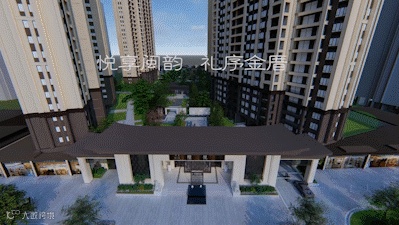 泉州金茂阳光城檀悦社区主入口中间正面为人行入口,一侧为车行入口,呈现出一个气度非凡的大门形象。
