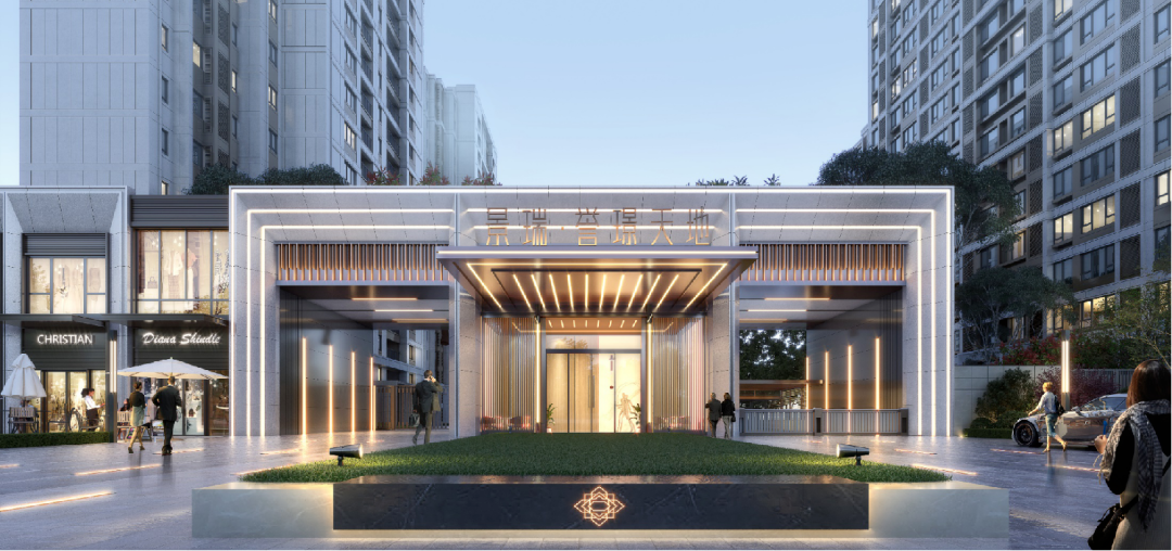 比如济南中海·九樾府入口府门方正挺拔,整合了地下车库出入口、人行出入口、商铺等多种功能需求。
