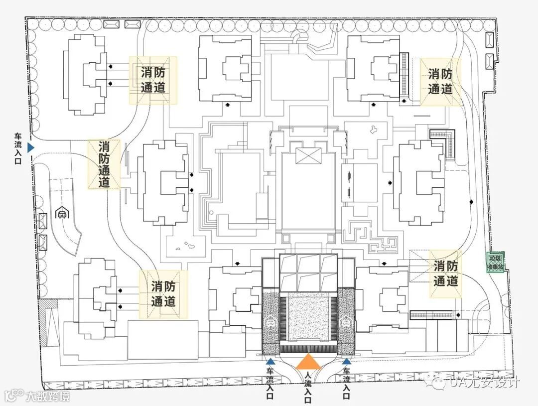人车分流的巧妙运用、消防通道的“不干扰式”分布设置、垃圾收集站的“边缘化”呈现等,共同刻画出静享式花园空间。