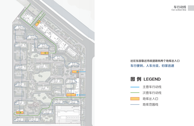 好的人、车的交通流线,不仅提升整个住宅小区的交通组织状况,对于城市街道交通是否相互通畅也起到了很大的作用。