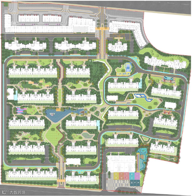 再比如天津景瑞誉璟天地社区设有4个地下车库入口,主入口的人行入口与车行入口是分离的,避免出现人车交叉动线,也方便业主步行前往北侧商街购物、去南侧幼儿园。