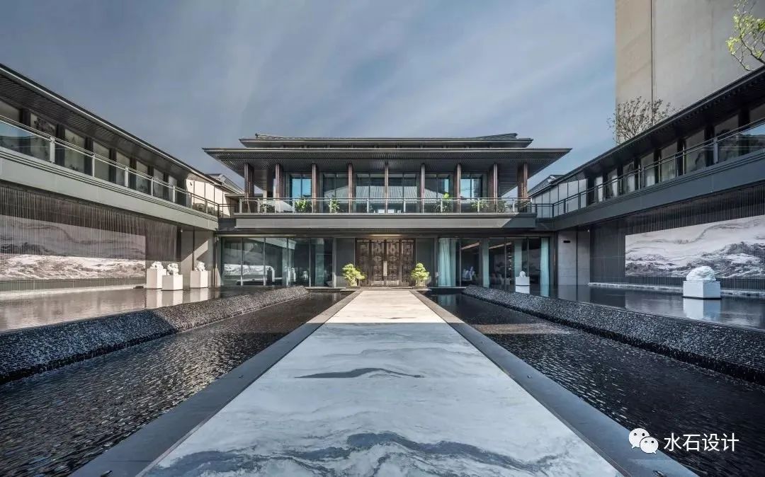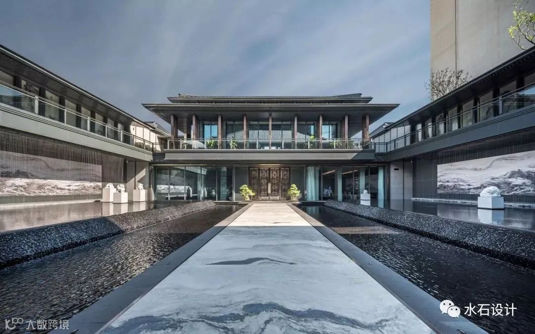 在人行进入时,先是路过大门一侧的水景,再到达更开阔的空间,不是单纯穿越一个门或一面墙来形成空间的转换,让回家这件小事变的更具有体验感和仪式感。
