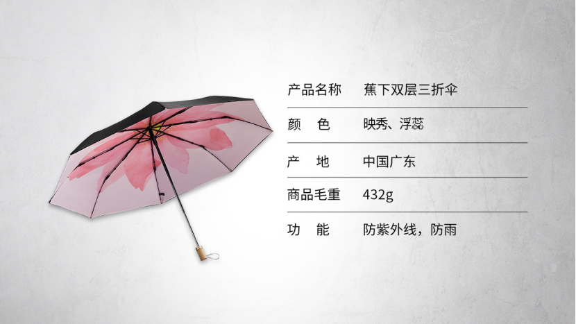 蕉下双层三折伞,时尚伞身设计、专业防晒技术;晴天防晒、雨天遮雨,给您带来更舒适的使用体验!