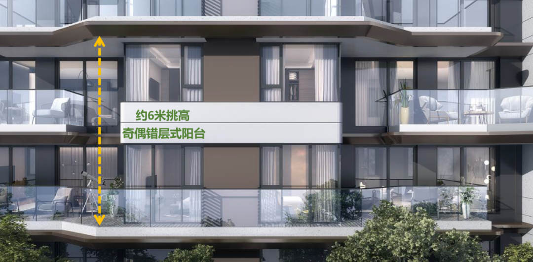 下文将给大家介绍各大房企做的不同形式的“错层挑高阳台”的不同做法,希望能给大家带来启发。