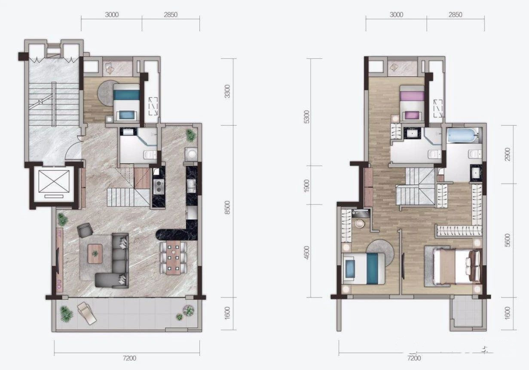 由此,创新产品有一个趋势,那就是将别墅立体空间的平面化,将别墅的院落、空中花园等元素在平面空间内实现——采用错层阳台及局部挑高方式,营造一种空中花园的别墅居住体验感。