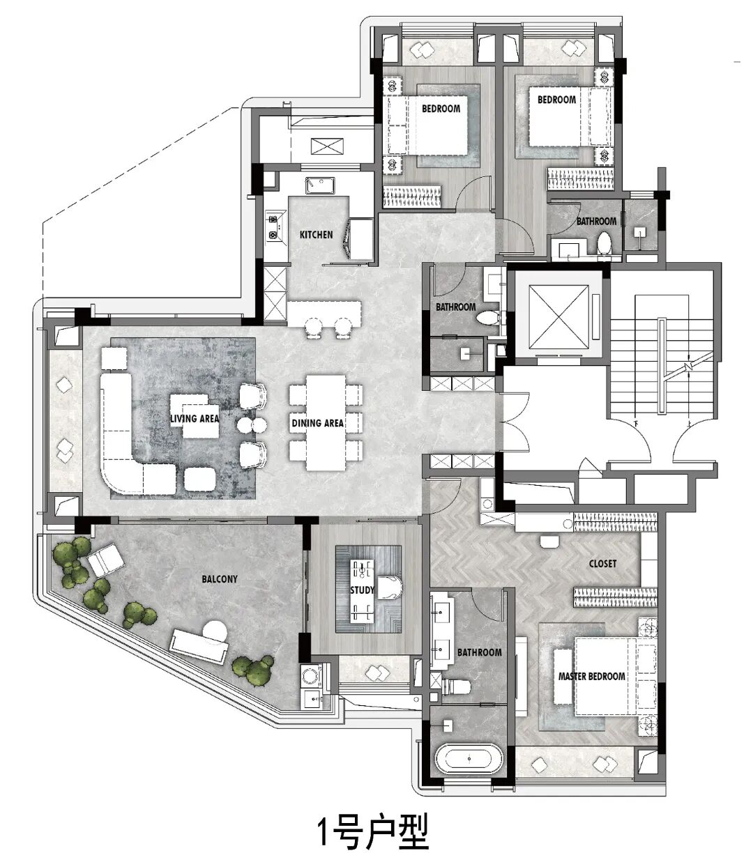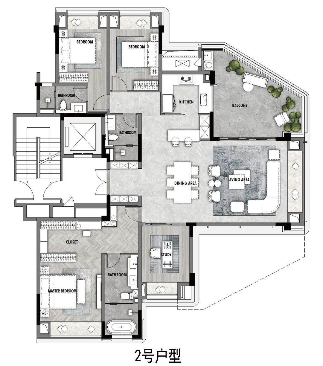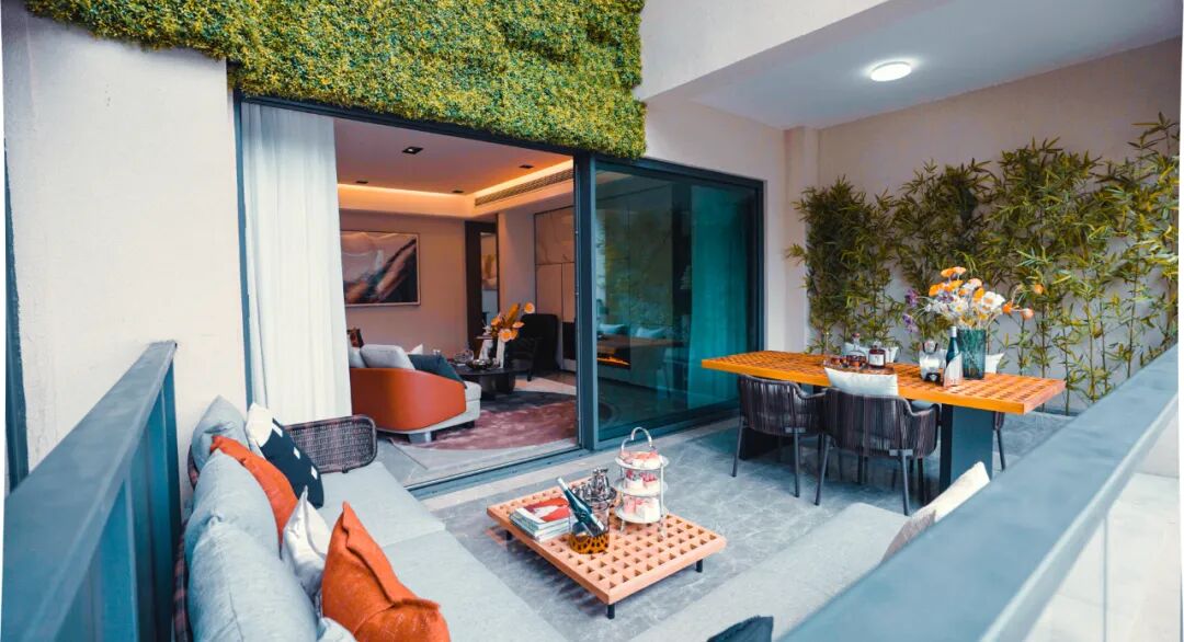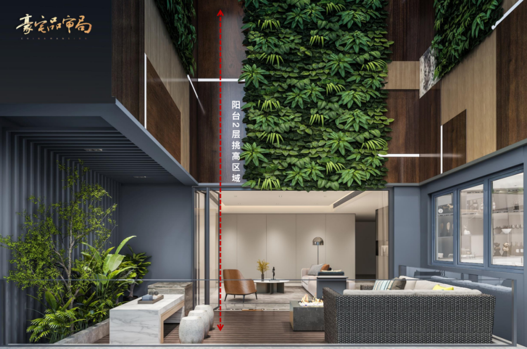 大平层没有像别墅产品那样的院子,一直是户型的痛点,对此各大房企另辟蹊径,做“错层挑高阳台”设计,将院子搬到空中,打破别墅和平层的界限,将空中庭院与大平层融为一体,呈现出墅质体验感。