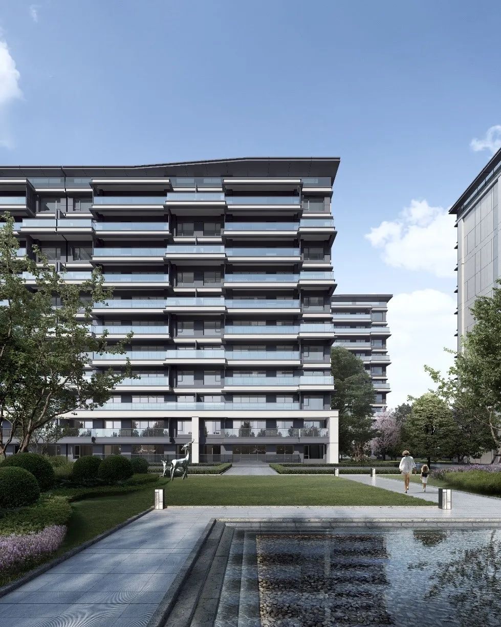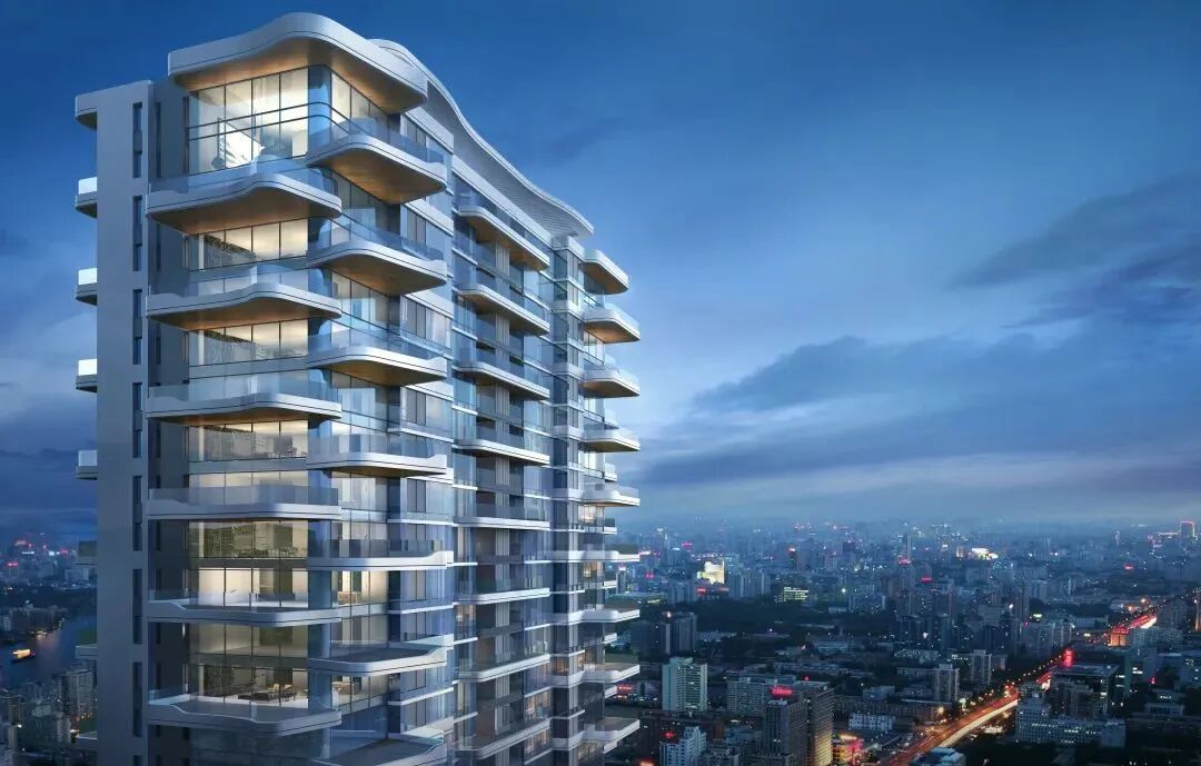 郑州未来天奕项目玻璃幕墙体系搭配进口系统窗,错层交叠环绕式全景阳台,一体化曲面设计。