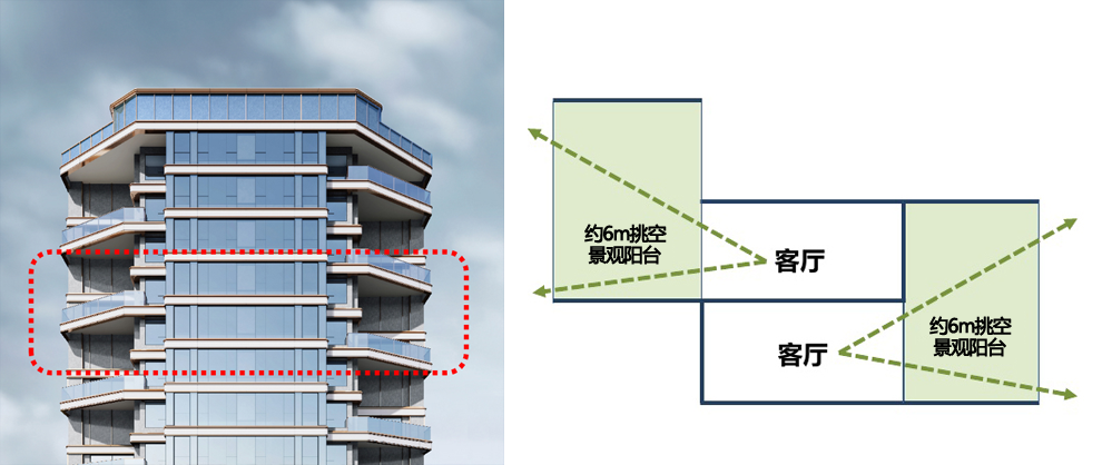 重庆中南·玖著天宸在产品设计上,以结构错位方式采用错层挑高设计,所有户型都采用了大面宽立体L型阳台,最宽的地方有约3.1米和约6米的挑高,就是一个空中花园。