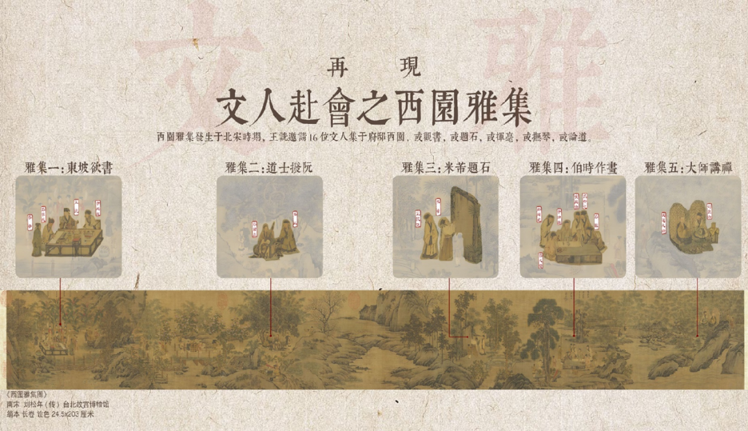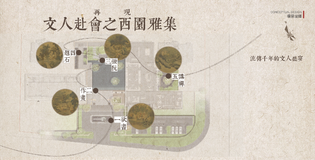 《西园雅集图》中的五个小故事对应琅悦示范区的五重空间礼序。