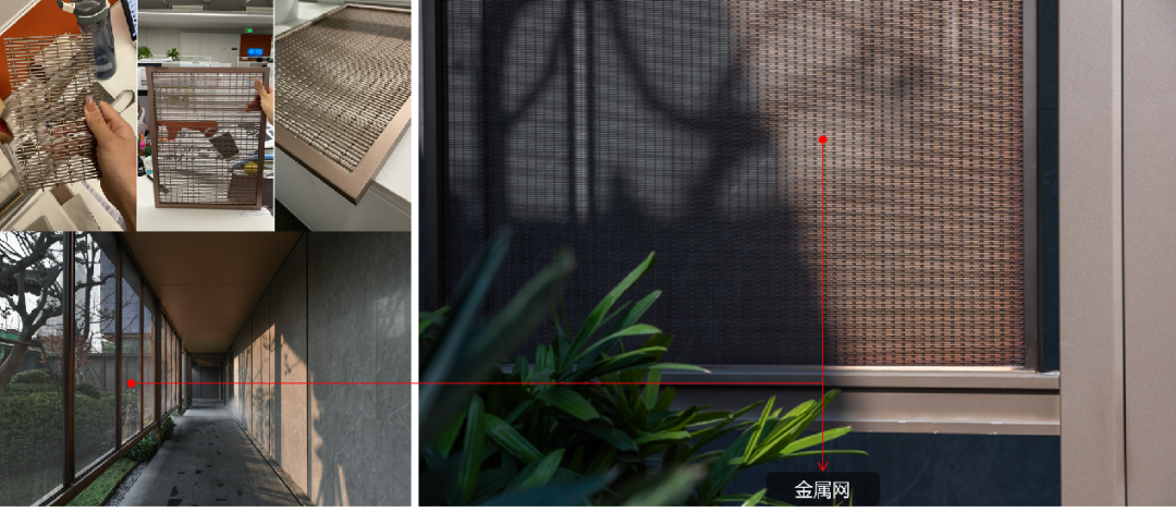金属网除了考虑纹理、通透率、颜色,还要考虑边框粗细及做工,初步确定1.5cm的边框后再通过实际打样确认。