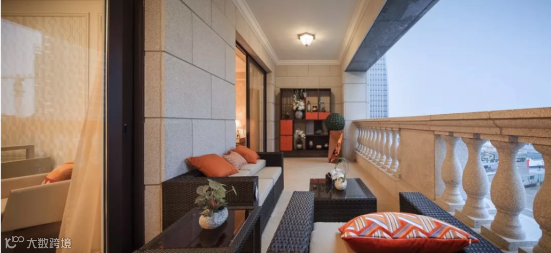 所有空间均拥有露台,结合立面建筑体的美感更加突出,所以该户型阳台面积总共达到了约80㎡,阳台作为每个房间的延伸空间,实现了室内与城市、自然的无缝对接,保证了室内的采光度,并且可以享受一览无余的视野。