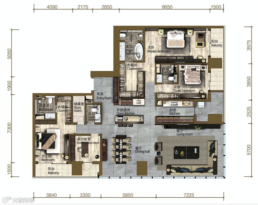 南京万科翡翠滨江380平米户型: