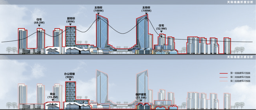 在立体三维视角,将城市意向5要素,道路、区域、边界、节点、地标,进行有机的,系统性的梳理和设计,塑造有温度、可阅读的城市界面。