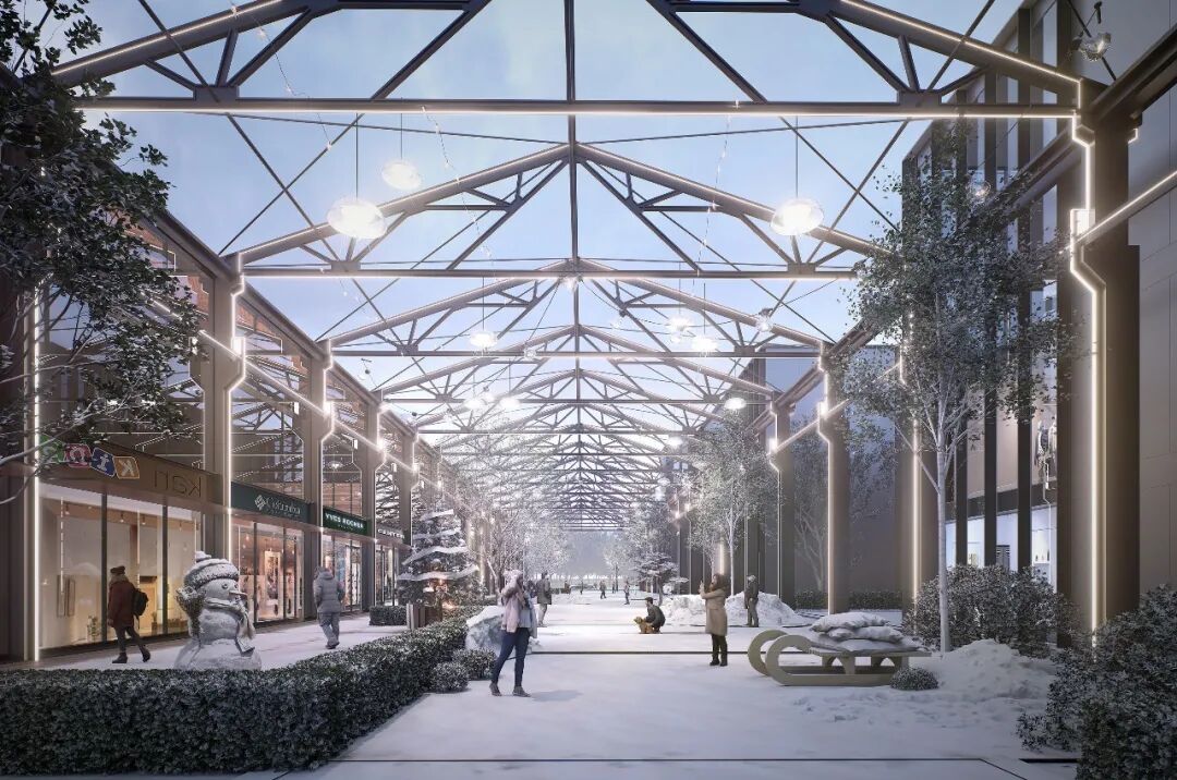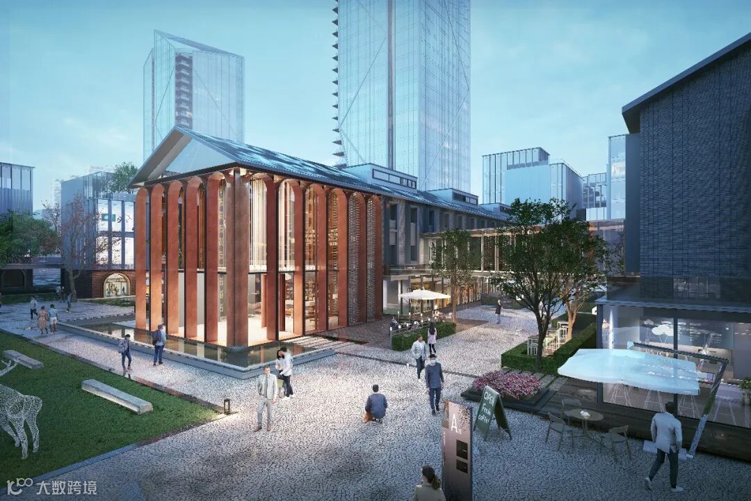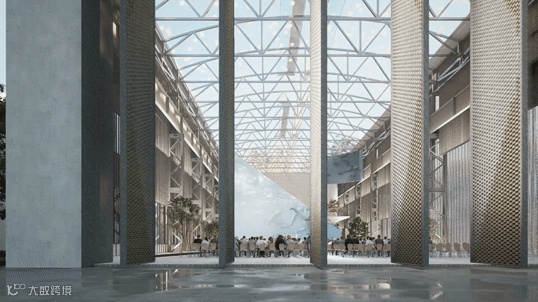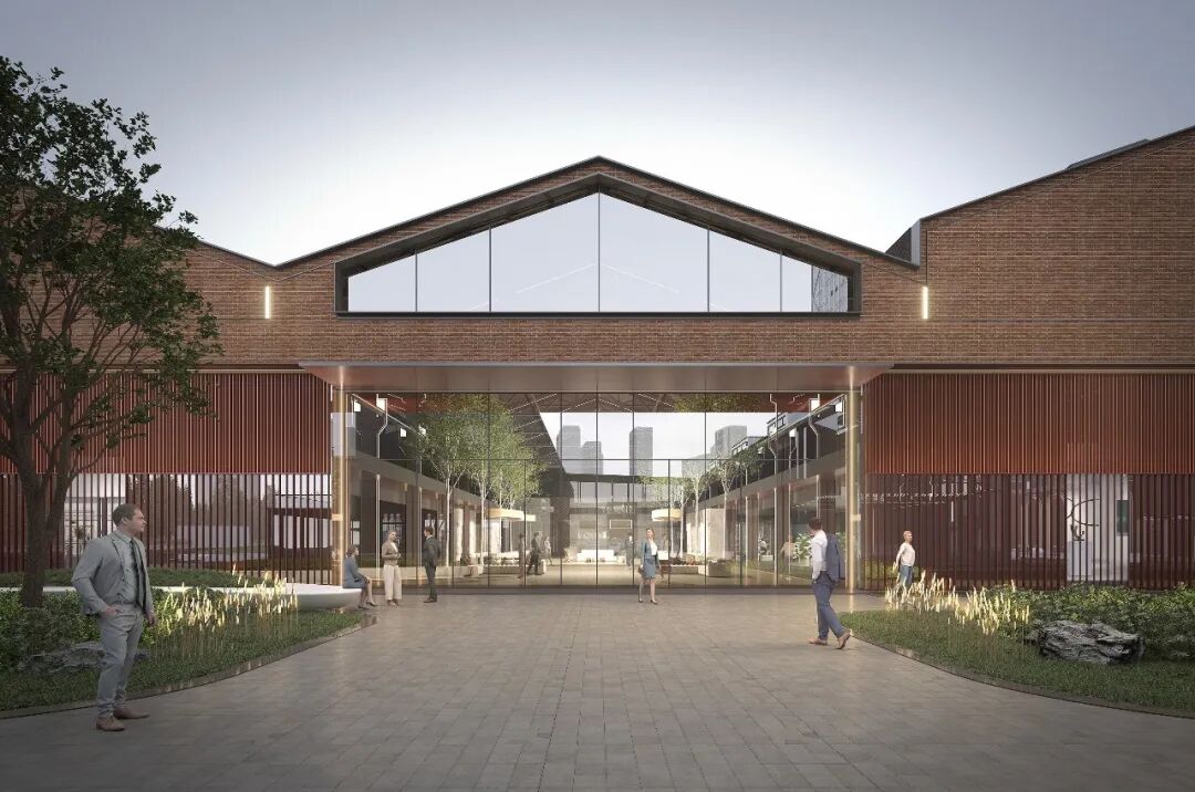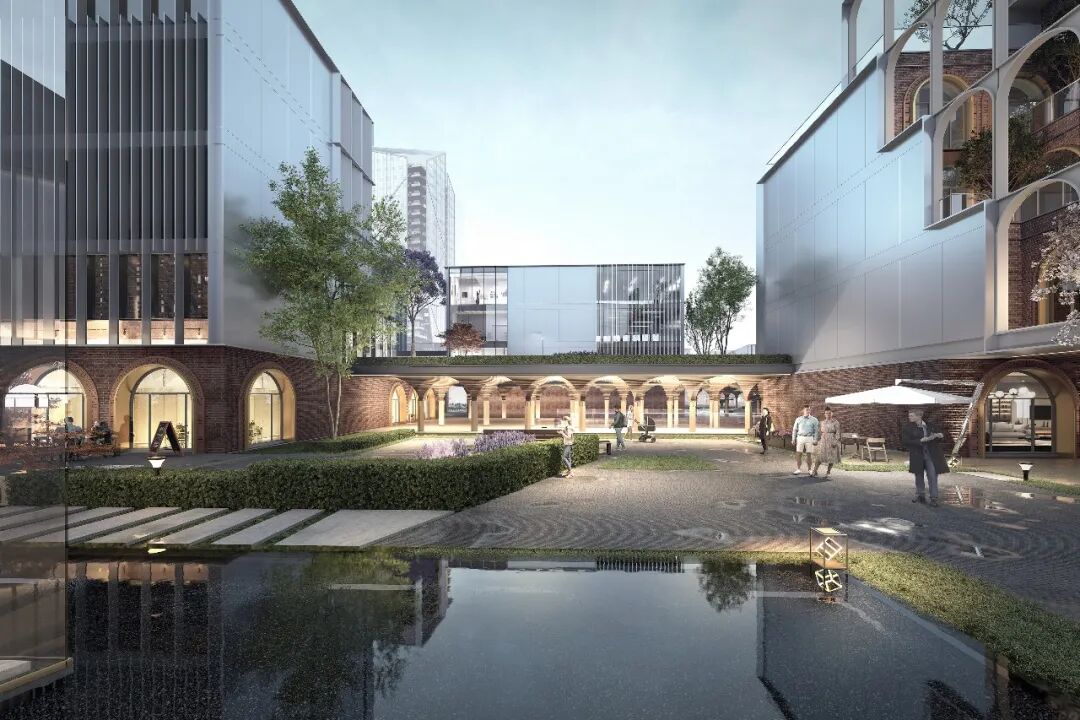 在建筑首层以连续的拱圈作为设计元素与场地工业氛围呼应,同时创造具有开放性和共享性的商业广场和庭院,延续城市活力界面。