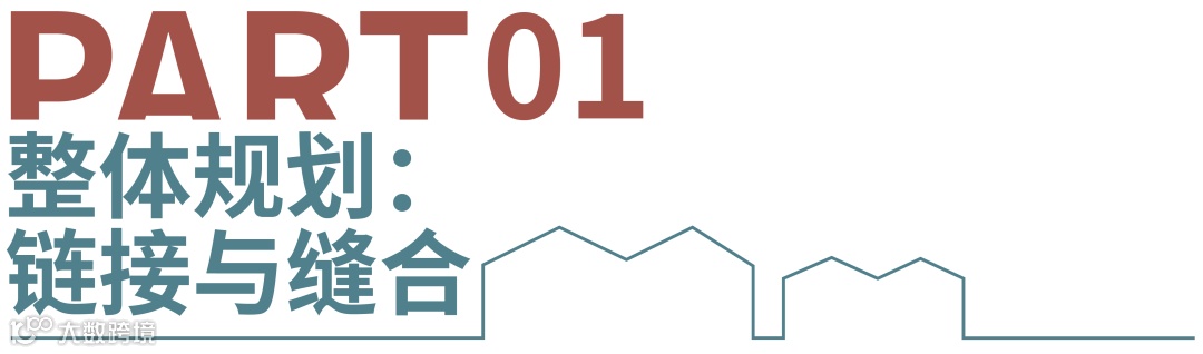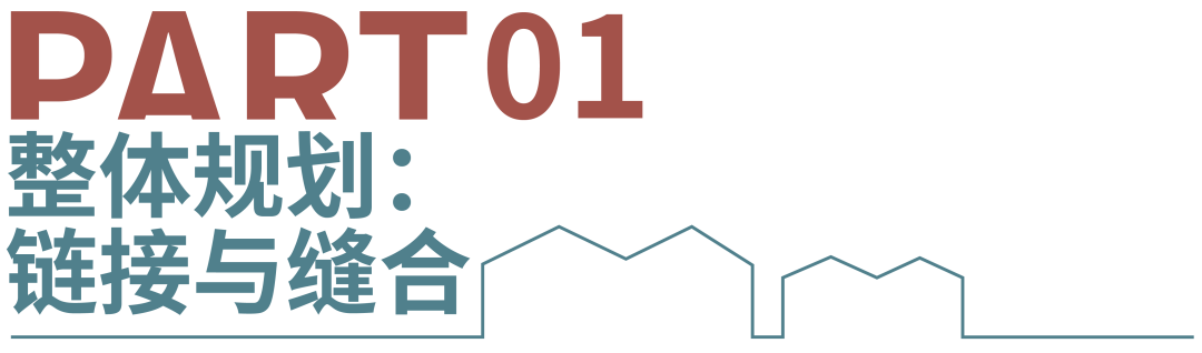 在地块内部,以超级T轴作为核心骨架,构建小C、双U的整体规划布局。将绿地、商业、办公、教育、住宅,以及14栋工业保留建筑进行系统性的串联整合。