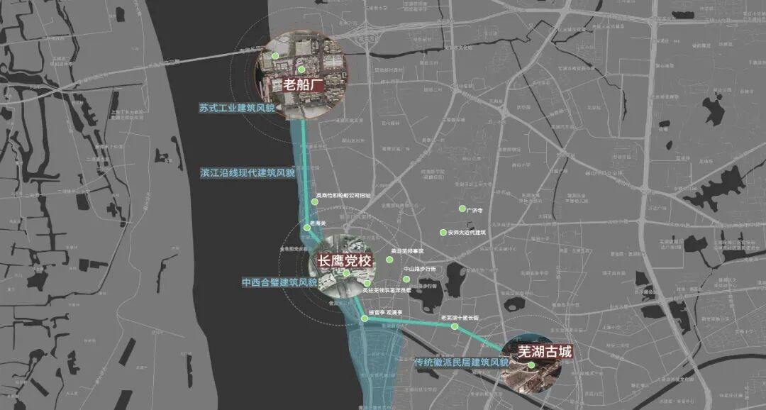 从整体角度解读长江与城市的关系,造船厂地块作为芜湖滨江城市更新系统的端头和重要组成部分,既承接着历史,也承担着塑造新的城市边界和中心城市形象的使命。