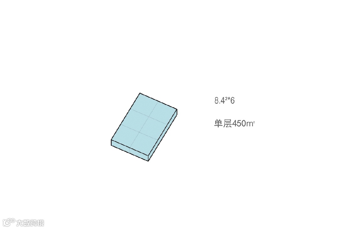 基于对办公空间的面积需求研究,我们以8.4² x 6=450m²为单元层进行不同办公场景的组合研究,5个单元层构成一栋建筑;每三栋建筑由一组共享公共空间相连,形成次级组团。