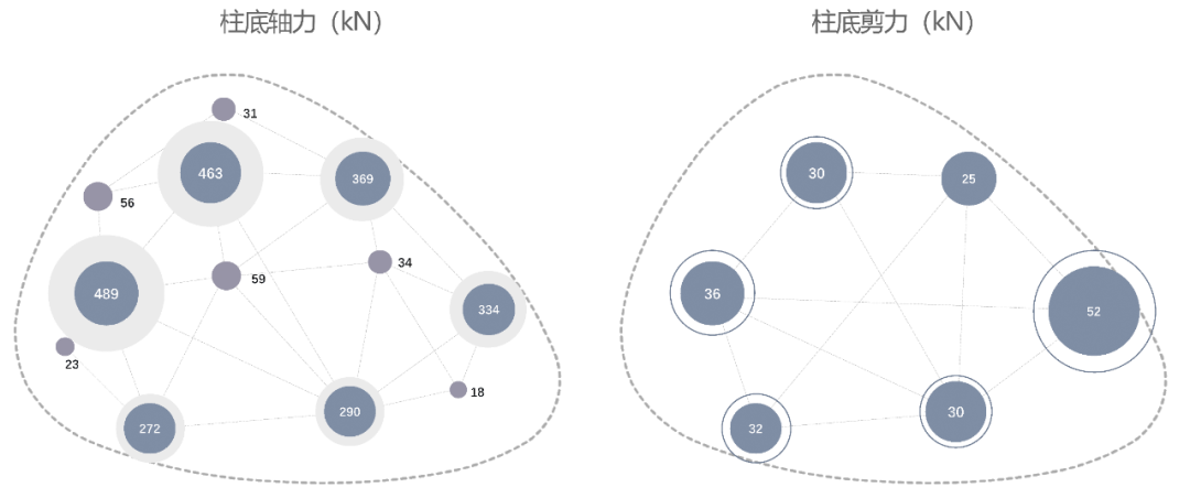 若以常规钢柱长细比上限120反向测算,景观塔钢柱直径至少300mm,但这无法实现“轻盈、纤薄”漂浮感的设计诉求。因此,我们采用 “高承载力-低延性” 的性能化设计方法,通过提高钢柱的承载力富余突破常规长细比限制,最终实现框架柱直径245mm、长细比150,摇摆柱直径152mm,长细比200。