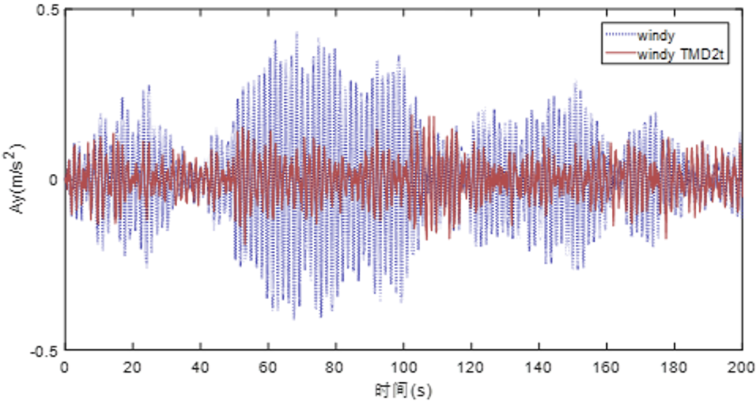 TMD施加前后水平晃动加速度对比 © gad