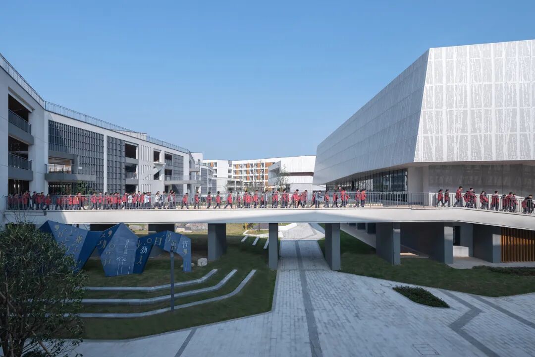 "The purpose of education is to awaken, not to shape", and the campus and the natural environment should not exist in isolation, so we try to break away from the traditional perception of campus space and try to integrate the valley, sunshine and the new campus, so that young people can unleash their curiosity and exploratory nature and spend their middle school years in an ecologically pleasant campus. Hangzhou Zhongtai Middle School was founded in 2001, and with the continuous influx of urban population, the student population of Zhongtai Middle School has been expanding. In order to create an ecological and free campus environment, the school decided to relocate to a new campus in Yuhang Zhongtai Street. After sorting out the surrounding natural and urban environment elements, we came up with the “study mall” architectural design concept, which abandons the traditional inward-looking campus environment that focuses on coursework and tends to face the city, nature and education with an inclusive attitude, creating a "multi-dynamic line, courtyard-style, and shared campus".