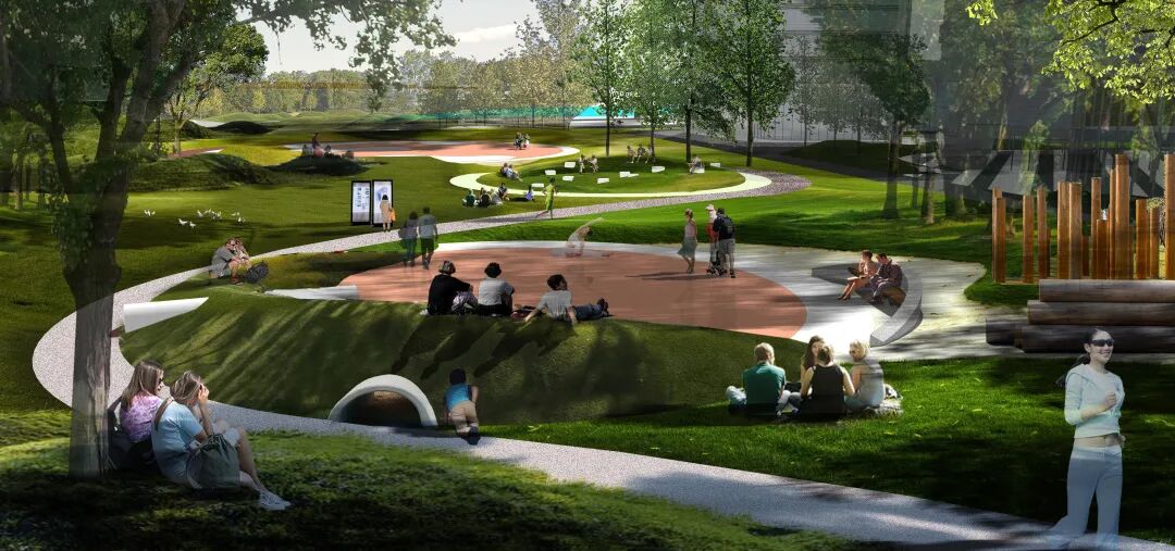 基地西侧紧邻204国道,虽然有城市绿带的隔离,但相对环境不是特别优越。在外部资源欠佳的条件之下,内部造景,营造专属于园区自己的私享大花园是较为合适的解决方案。
