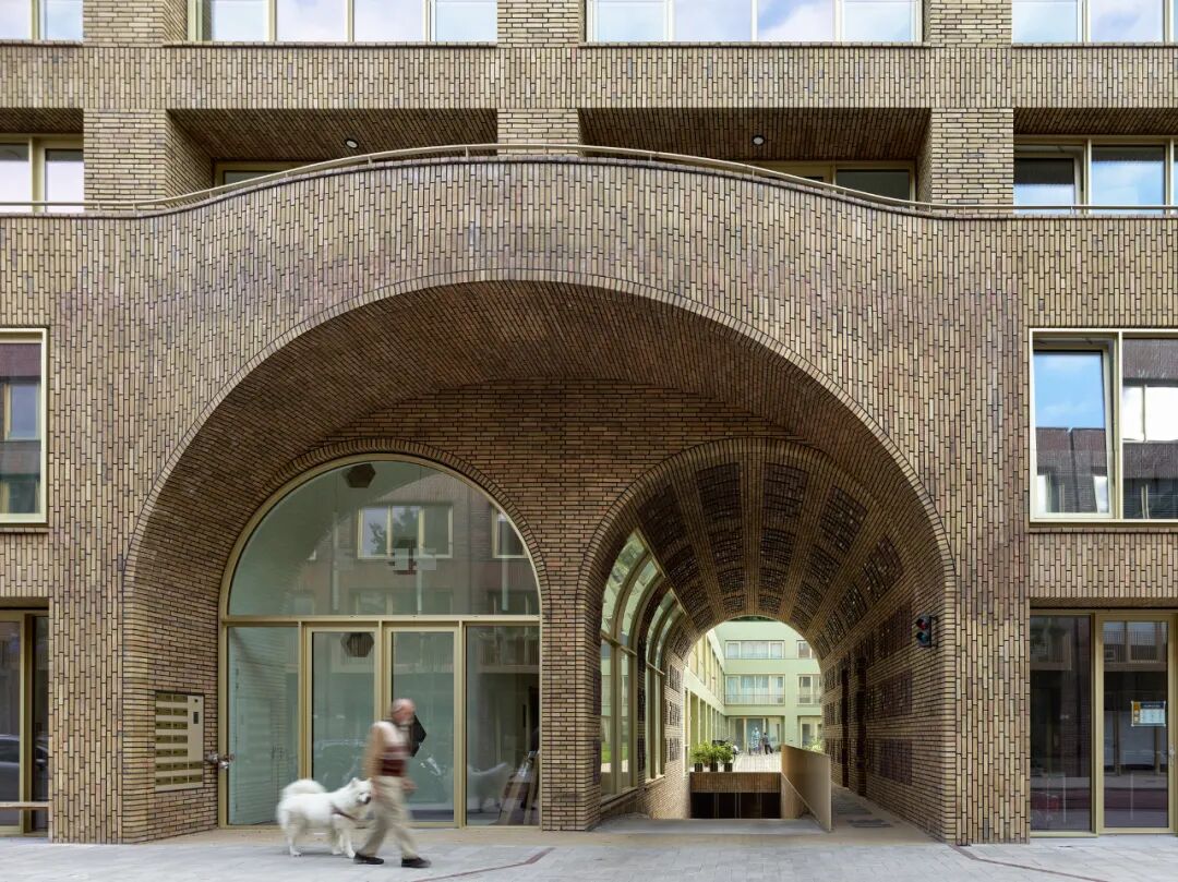 The project’s location is surrounded by not only De Klerk’s Het Schip and Spaarndammerplantsoen, but also Walenkamp’s Zaanhof and De Bazel’s Zaandammerplein. And while the architecture of Spaarndammerhart is unmistakably contemporary, it also has subtle references to these Amsterdam School classics. For instance, the building features rich and nuanced masonry in red and yellow brick, glazed bricks for the 'interior facades' of the courtyard, slender profile frames in an unambiguous facade structure, and ‘soft’ progressions along the building’s mass. In addition, visual art – in this case by Martijn Sandberg – is an integral part of the larger architecture and landscape design.