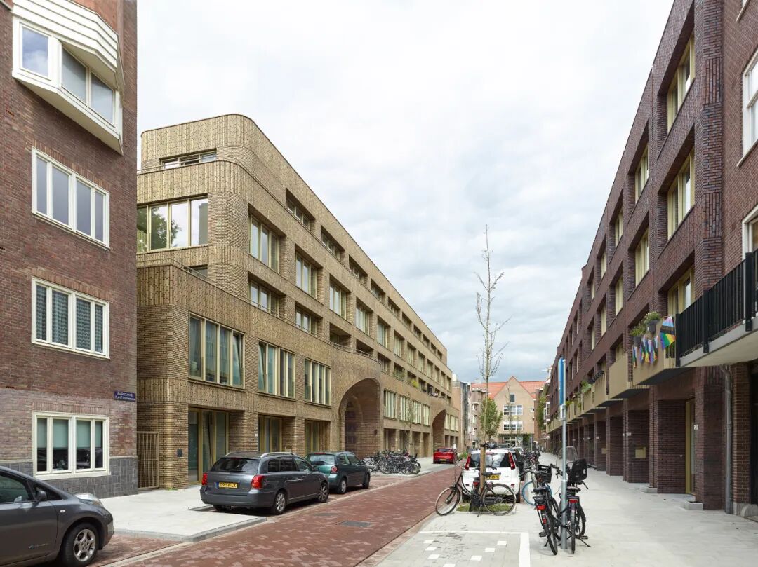 The Spaarndammerhart restores the urban fabric of the Spaarndammer neighborhood. The street that disappeared in the 1970s for the construction of the local school, Spaarndammerschool, has been restored. The plan also brings back two street walls and adds a public courtyard to the neighborhood. Accessible through two large gates, it also connects to De Klerk's iconic ‘The Ship’ building. In fact, the neighborhood is characterized by several world-famous monuments of the Amsterdam School.