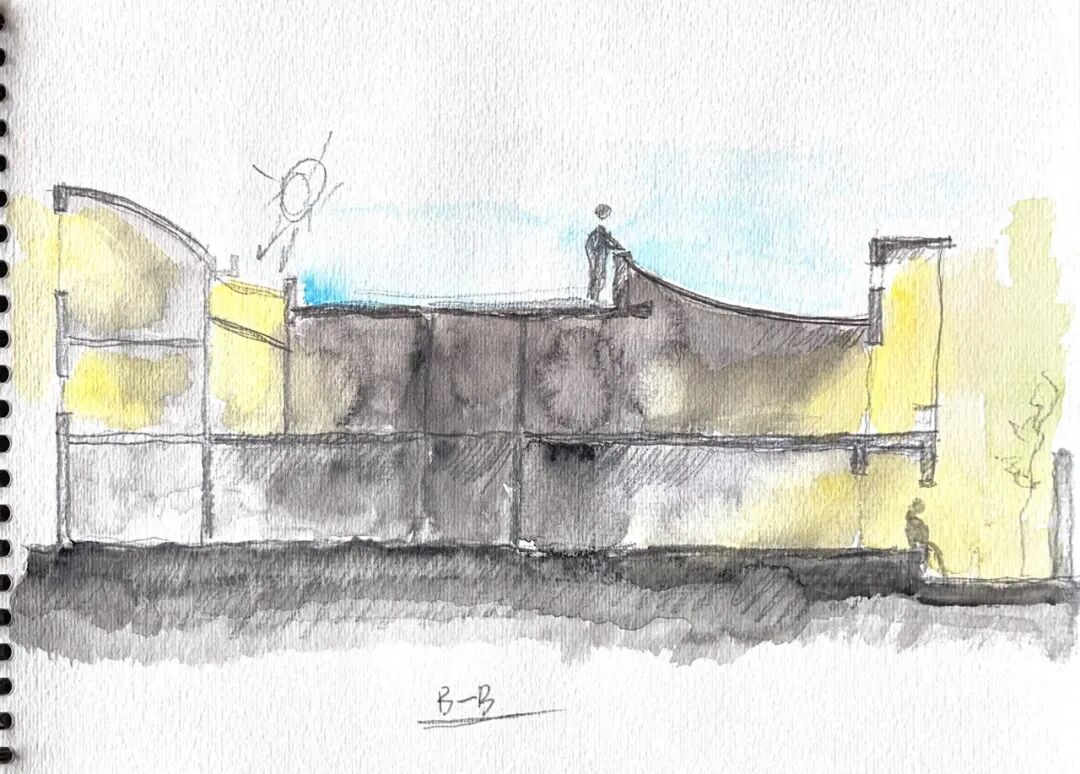我们希望建筑内的活动与周边私人住宅不要有冲突与干扰,不希望它受到周边环境的干扰,也不希望干扰到周边村民,真正做到共融、共生。所以通过空间的错落与布局制造一个完全隔离于外界的内向型的布局,让活动在建筑内的人不受外界干扰也不干扰到外界。