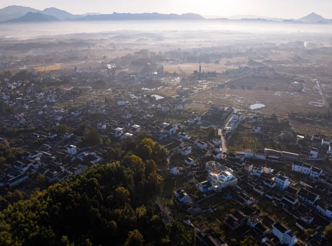 瞭望塔远望村落起伏屋顶 © 是然建筑摄影