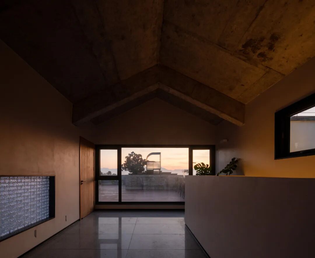 从外面复杂的村落巷道推开门进入到一个充满意味的空间,让人产生一种别样的思绪和内心喜悦。体验最终停留在屋顶露台之上、瞭望塔之中,从幽远深邃的空间到豁然开朗的视野。站在露台与瞭望塔之上眺望远山、回望内院、俯视屋顶。通过这一系列的空间大小、视域收放、视距远近和向心与向外的营造让人产生动态视觉感受。