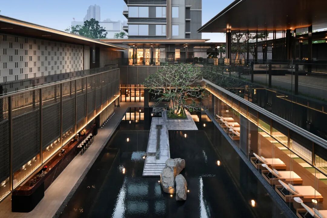 借鉴安缦酒店“在自然中感受生活的平和与宁静”的设计理念,保利灯湖天珺「珺club」会所通过内外空间连续性的塑造与空间关联性的情绪引导,将安缦式的酒店融于自然的气质赋予居住空间中。