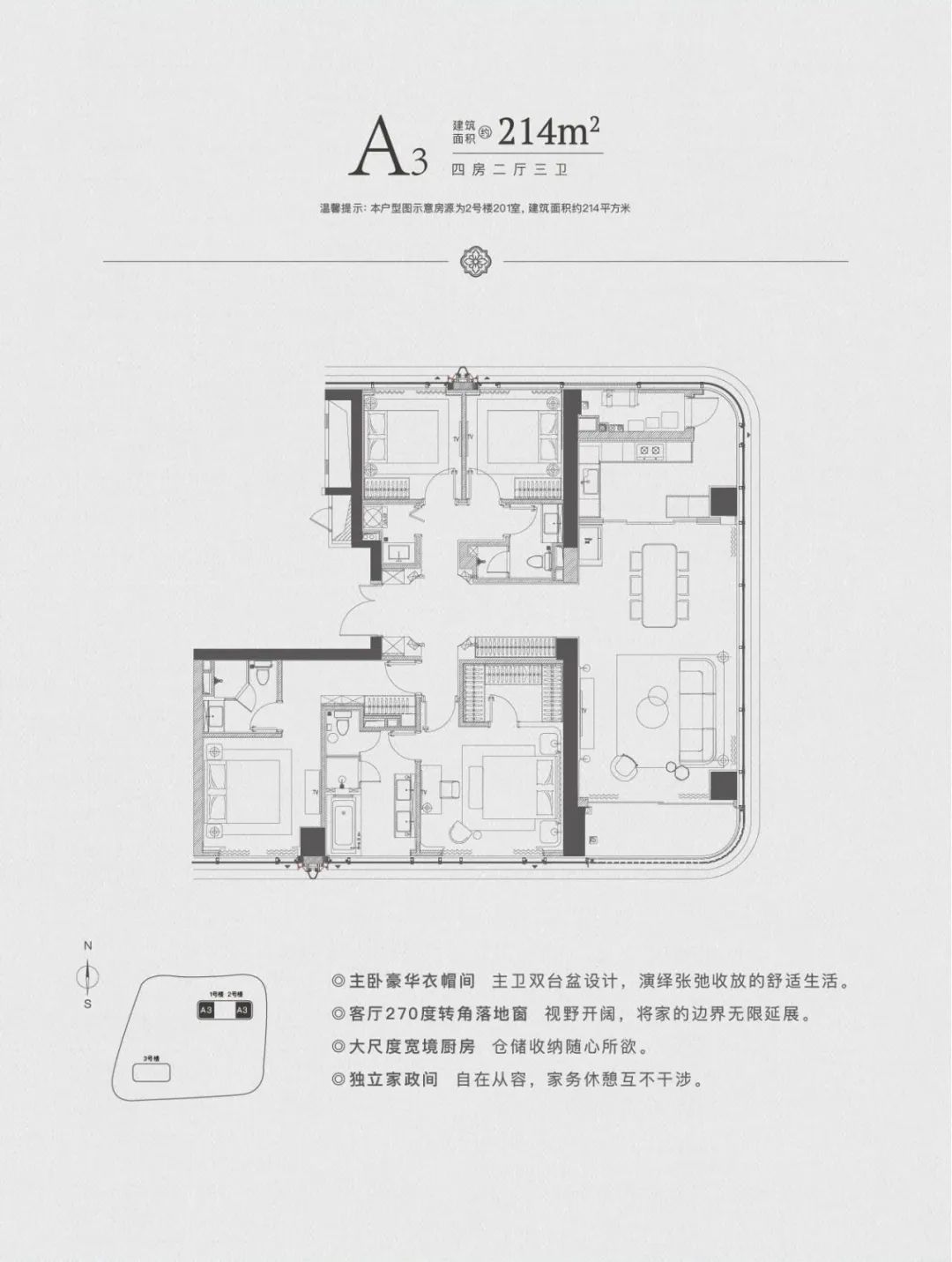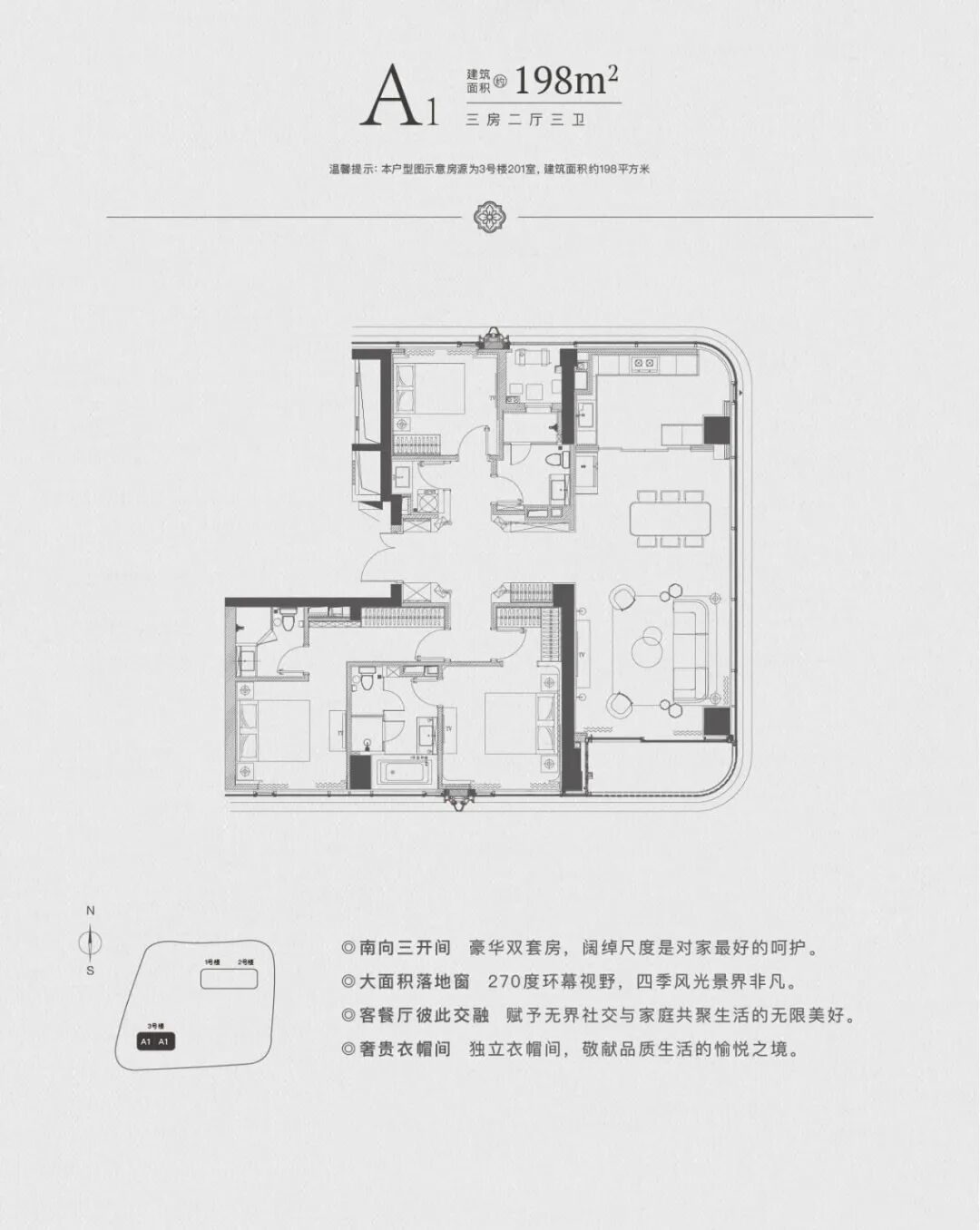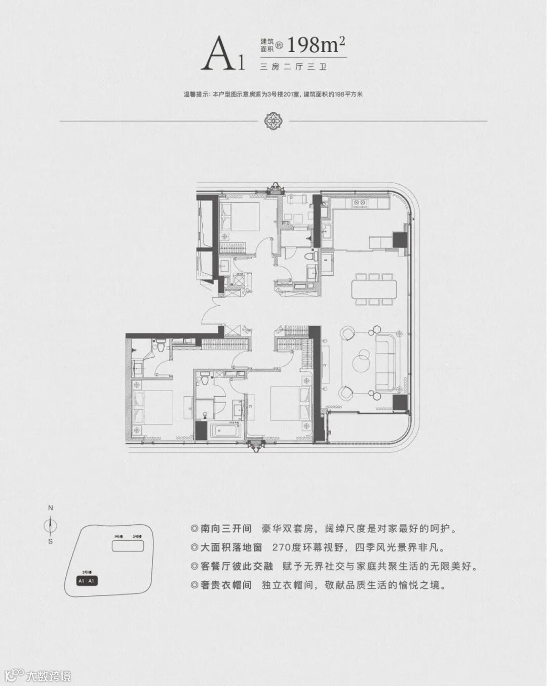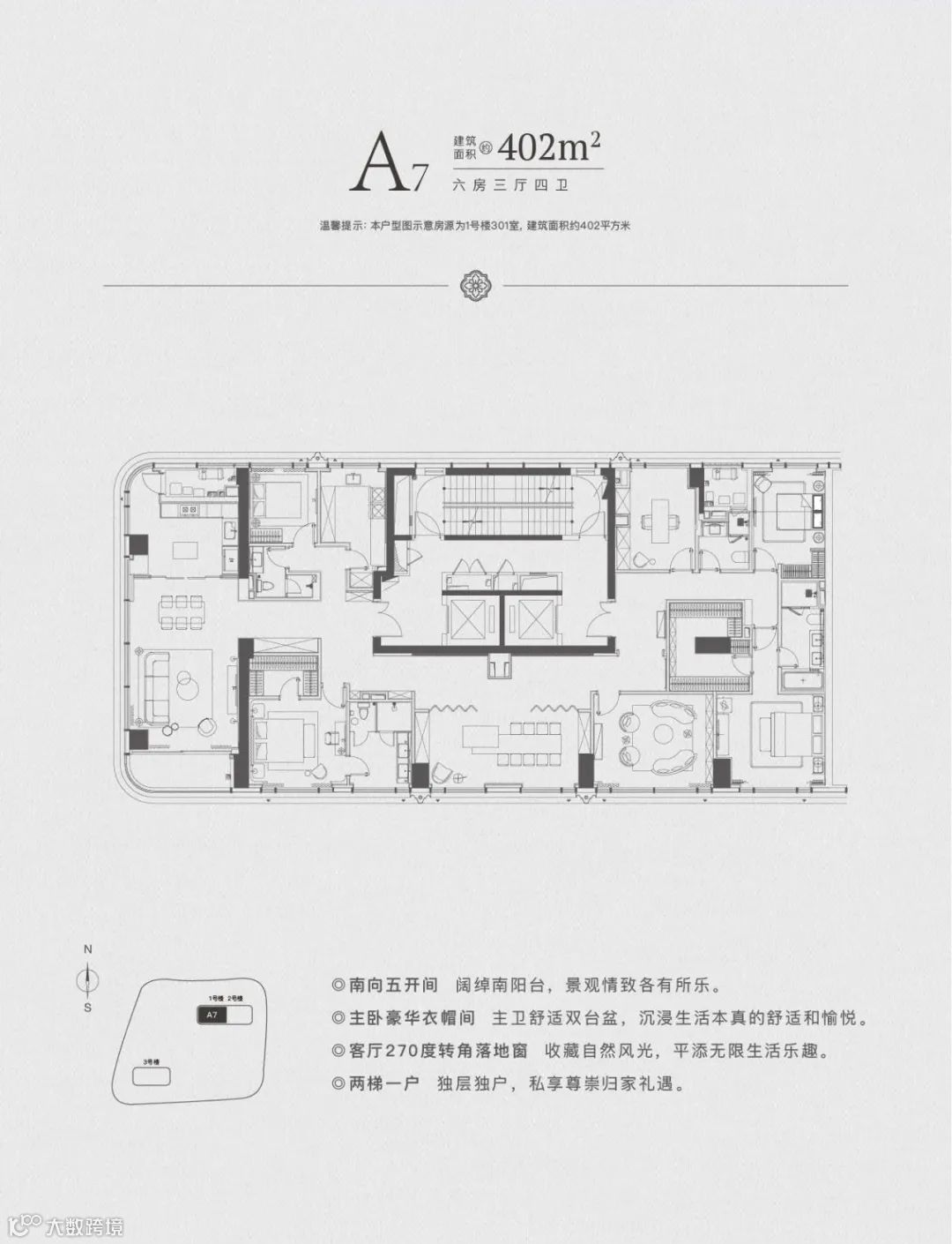 首推建面约120㎡-270㎡的大户型住宅。