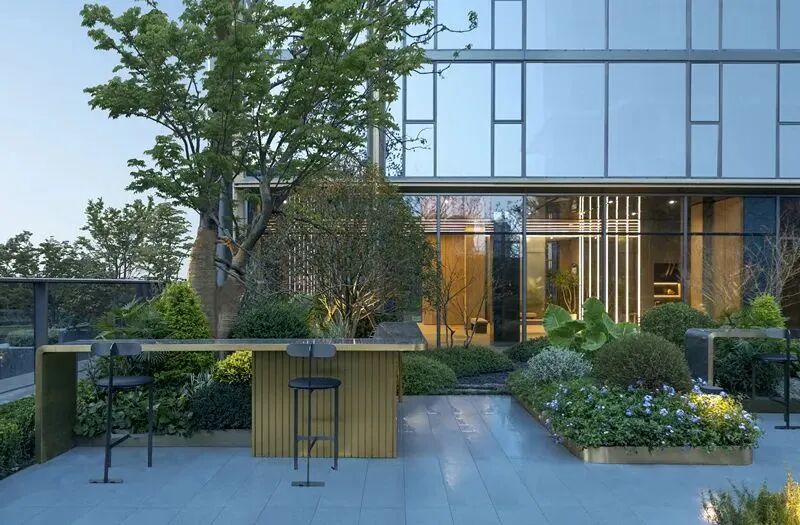 在园林设计上,嘉佰道以“延续建筑‘兰草’的语言、延伸空间的生命力”为设计理念,融合了成都千年锦江文化与现代都市氛围,呈现出一个充满历史韵味的名画质感园林。