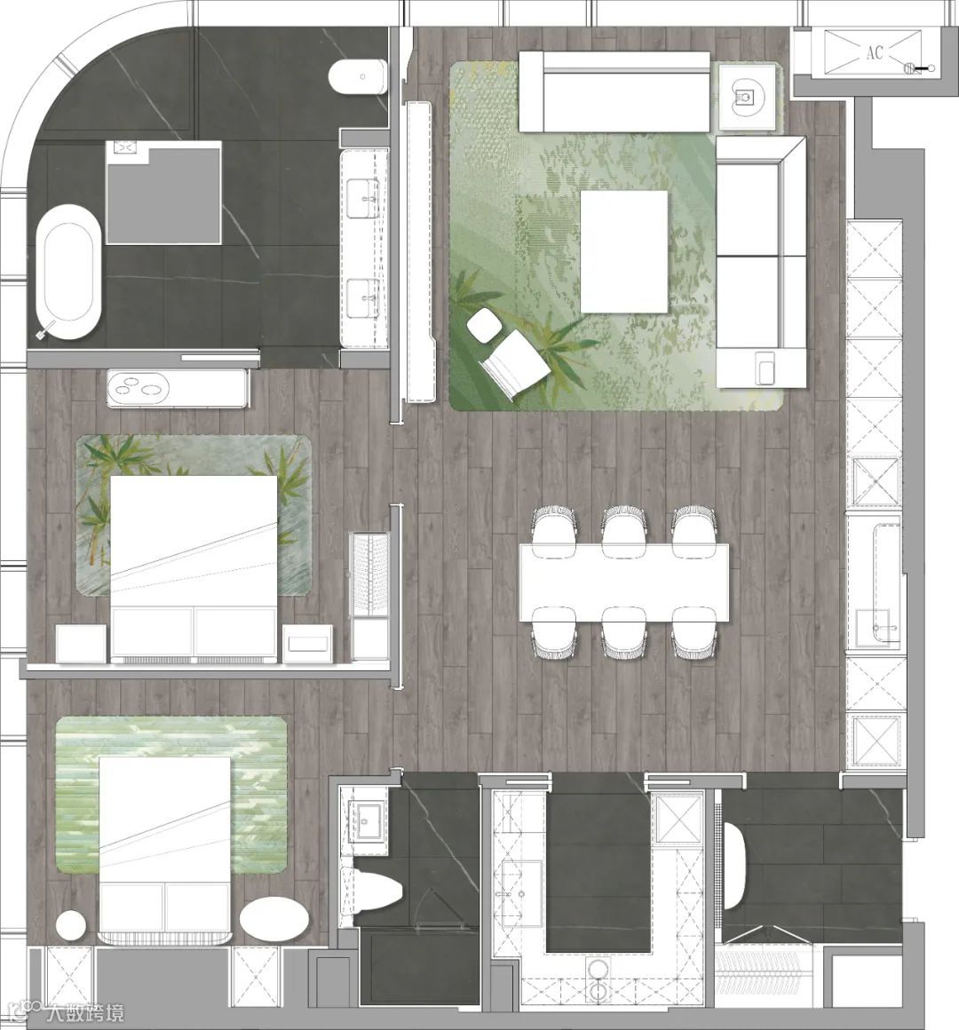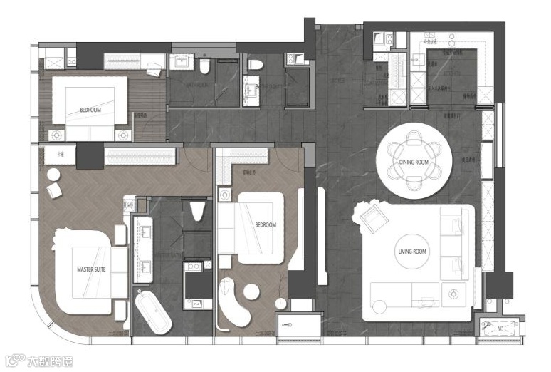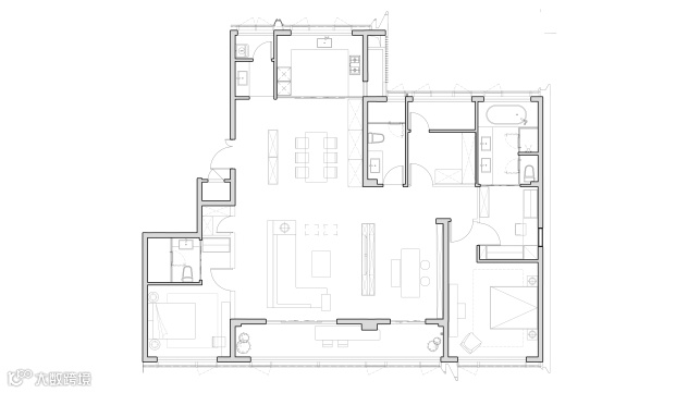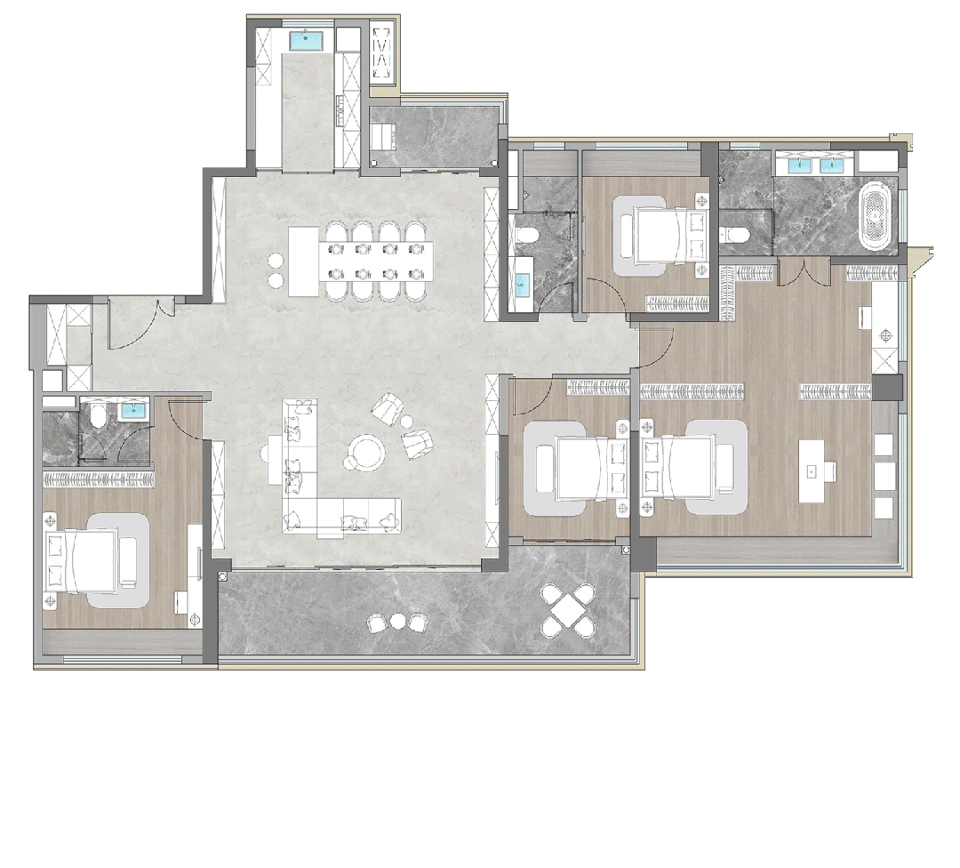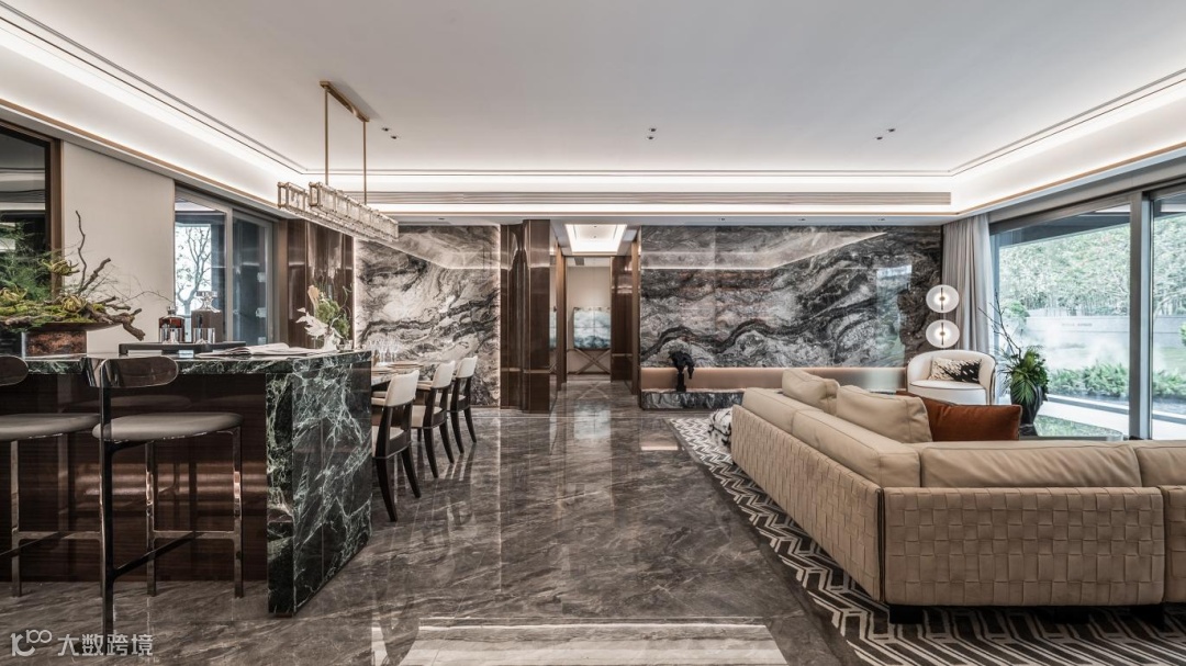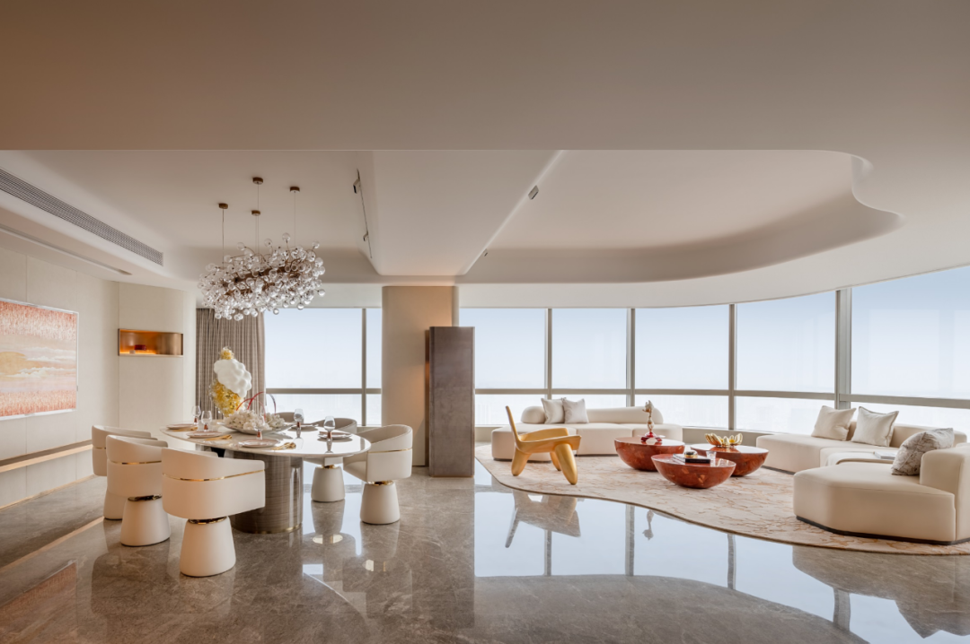 4室2厅3卫,260多平做出了300多平的视觉效果。整个公区面积就达到约100㎡,相当于一个“全场景超聚厅”。