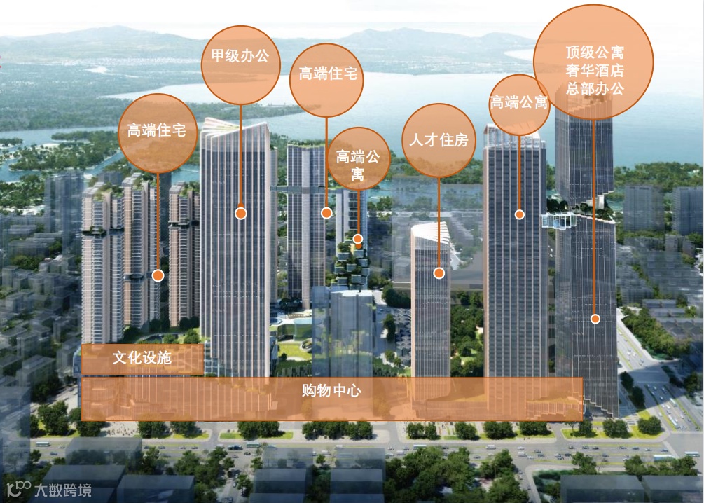 创新了多项深圳“第一”,如规划打造了深圳第一座八大业态综合体:在环湾顶点之上高度聚合塔尖住宅、高端公寓、菁英学校、高奢酒店、商务地标、绿地公园、漫调商业、文化艺术八大业态于一体,探索环湾都心、复合城市的未来生活巅峰实践。