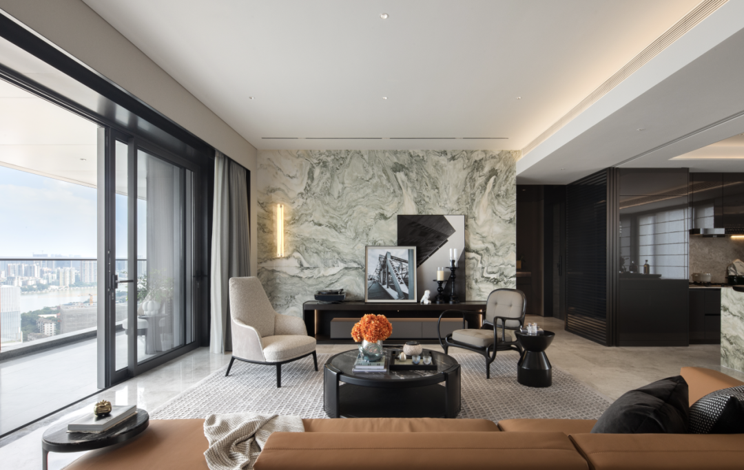 搭配巨幅超大落地窗,倚窗而望,仿佛凌驾于江水之上。而270°宽景阳台,带来了270°流光巨幕,亦成为天然的取景器,每一个转身皆是景。