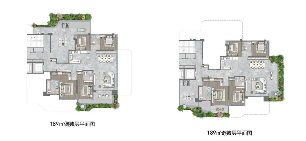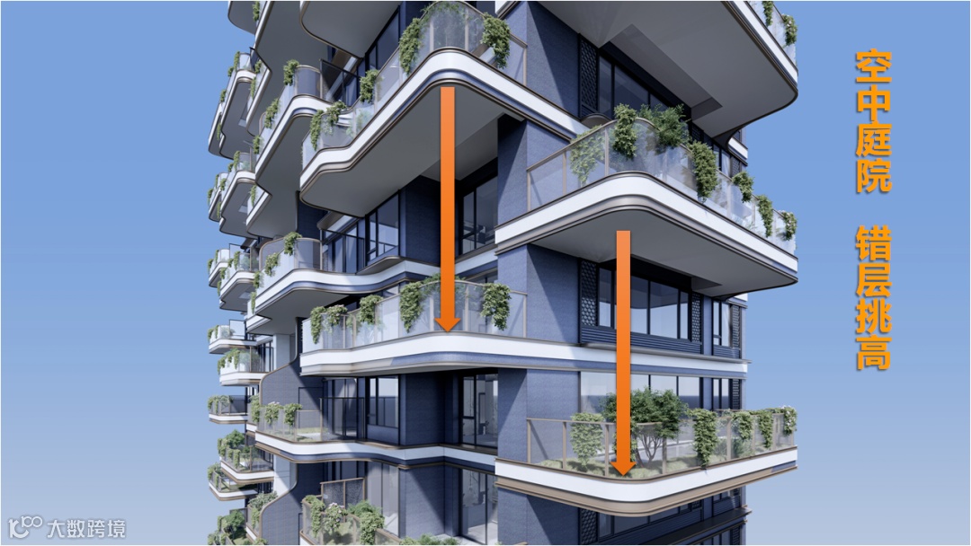 双露台+奇偶层错落设计,在保证居住私密性的同时,又确保了观景/采光效果,两全其美。