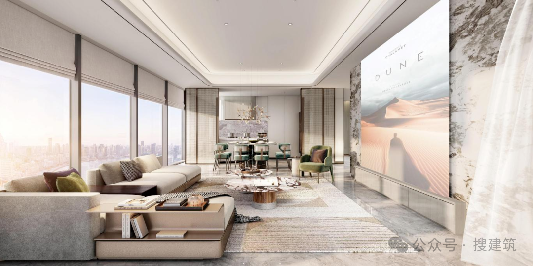 项目全新约191-303㎡国际范江景大平层,没有用标准化的产品流程,更没有做模板化的产品复制,而是对标世界华宅规制,引入国际前沿审美及设计理念,视野、空间、功能、居住尺度等都足够壕阔,将国际化的豪宅理念落地于每一处生活细节。