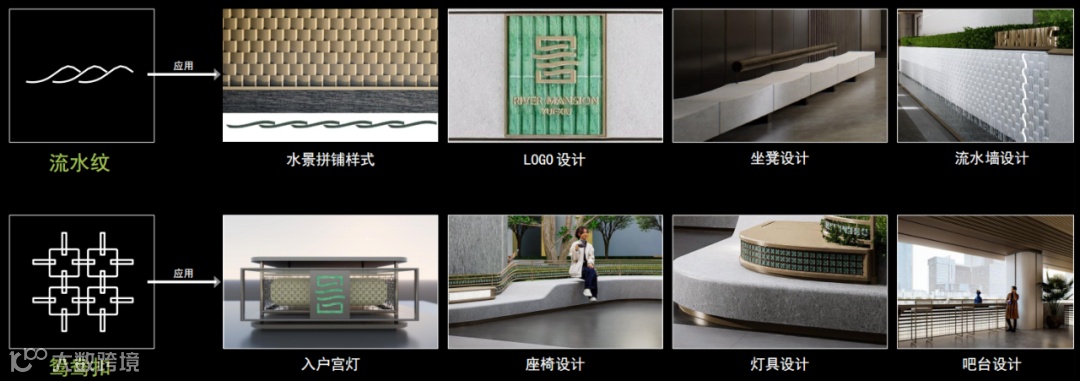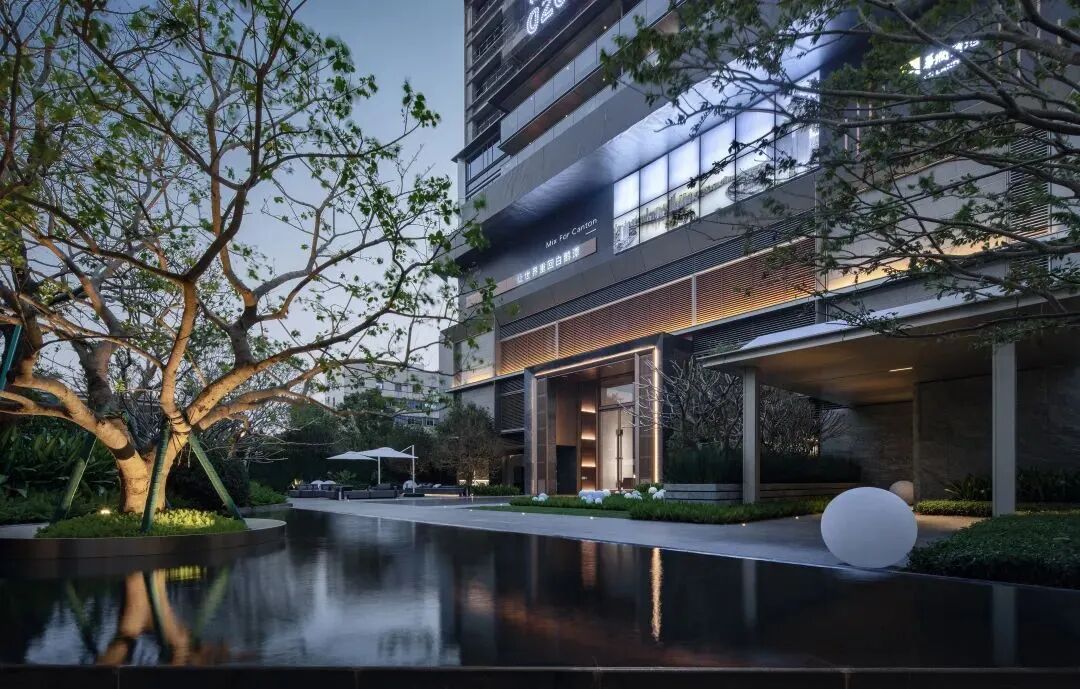 设计六大场景亮点:星级酒店式落客区、酒店迎宾lobby大堂、水庭归家礼序、酒店式风雨连廊体系、岭南庭院空间布局策划、在地文化的设计转译。