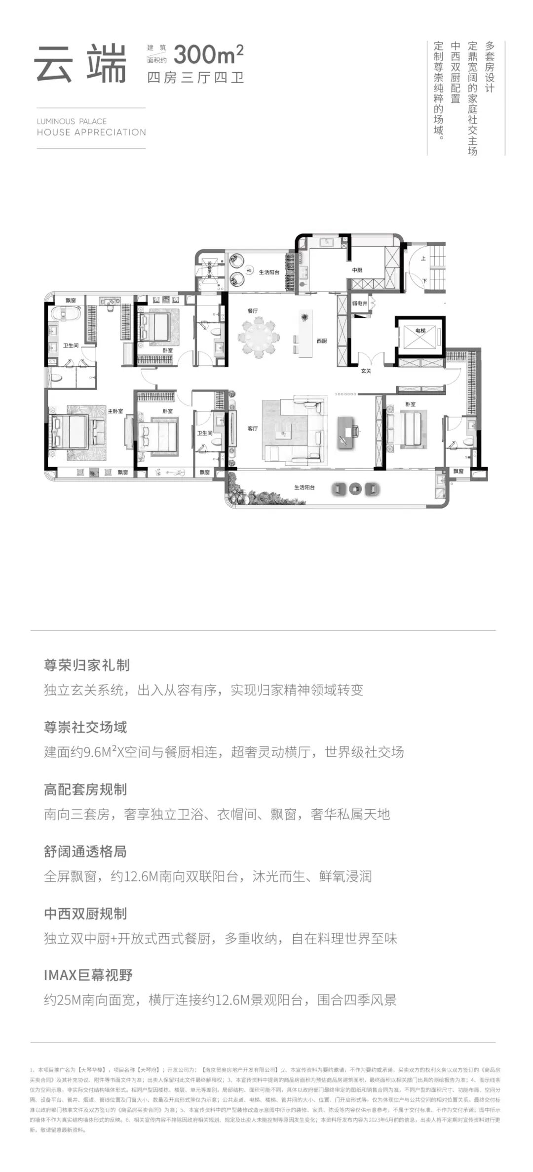 天琴华樟的起步户型做到了诸多高端改善盘难以企及的建面约300㎡。主力建面约300、345、385㎡,全南向四房布局,更有建面约571、628㎡的顶层大平层。